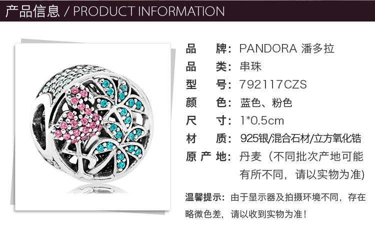 PANDORA/潘多拉 女士多色雨林火烈鸟925银串饰 792117CZS