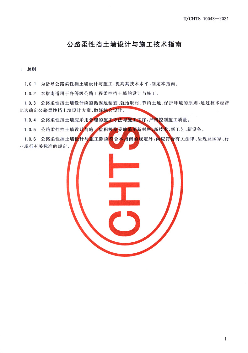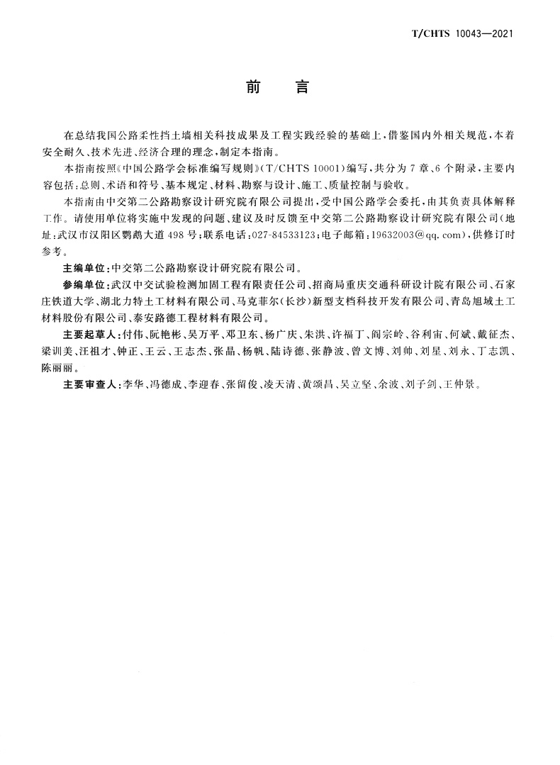 书名:公路柔性挡土墙设计与施工技术指南(T/CHTS 10043-2021)