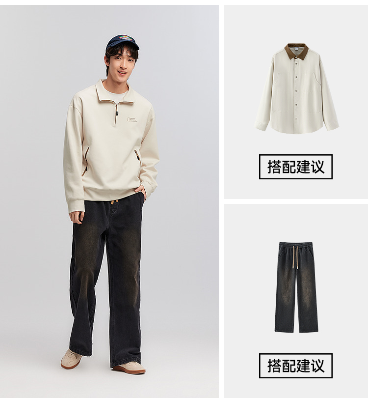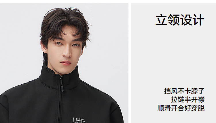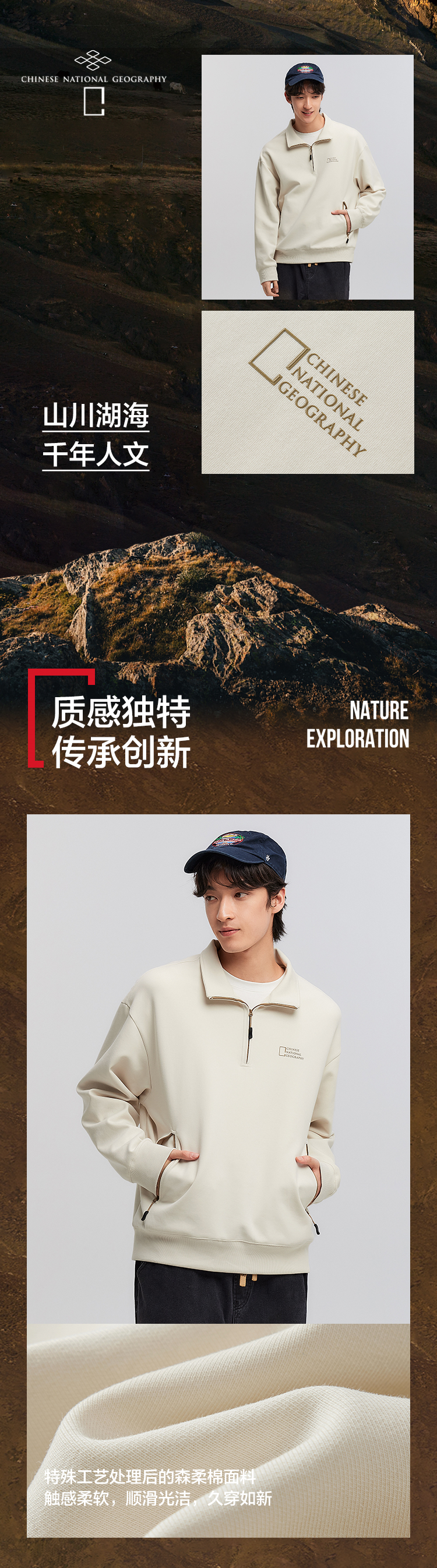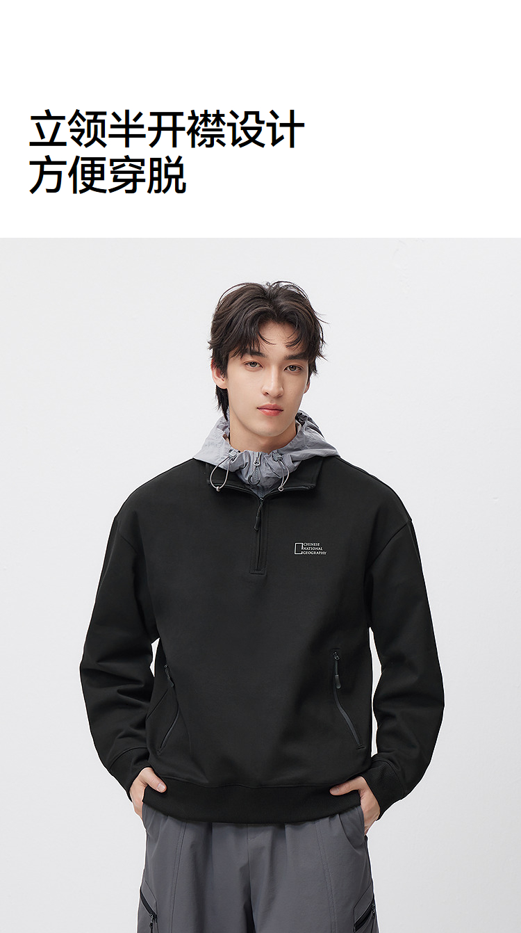 森柔|森马中国国家地理嘉绒系列卫衣男春半开襟立领上衣简约户外