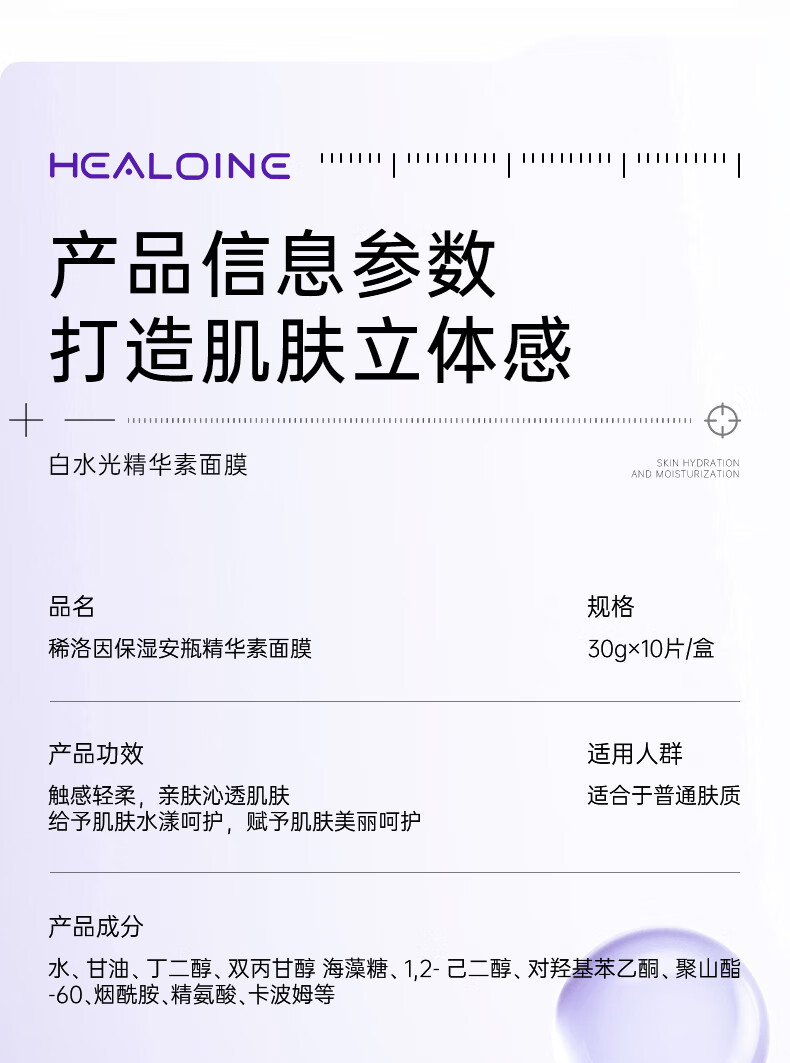稀洛因保湿安瓶精华素面膜30g*10片