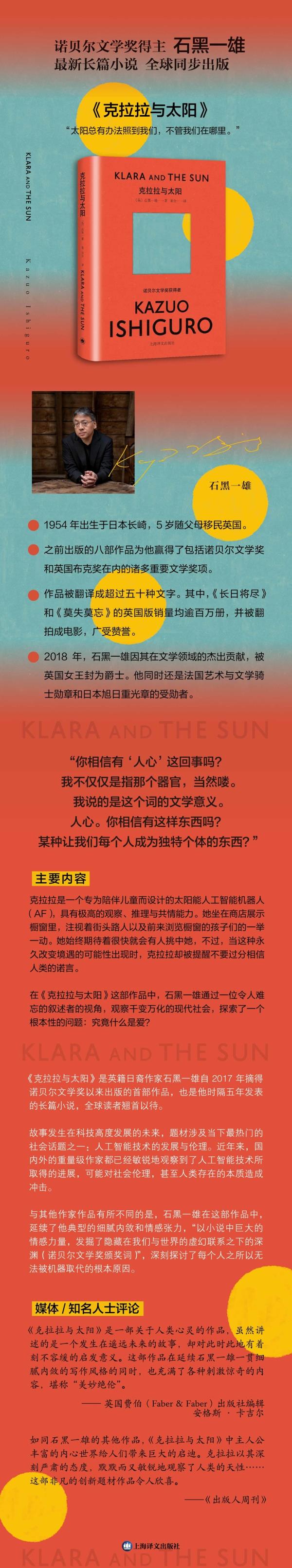 【新华书店旗舰店官网】正版 克拉拉与太阳 诺贝尔文学奖得主石黑一雄新作日本文学外国小说书籍