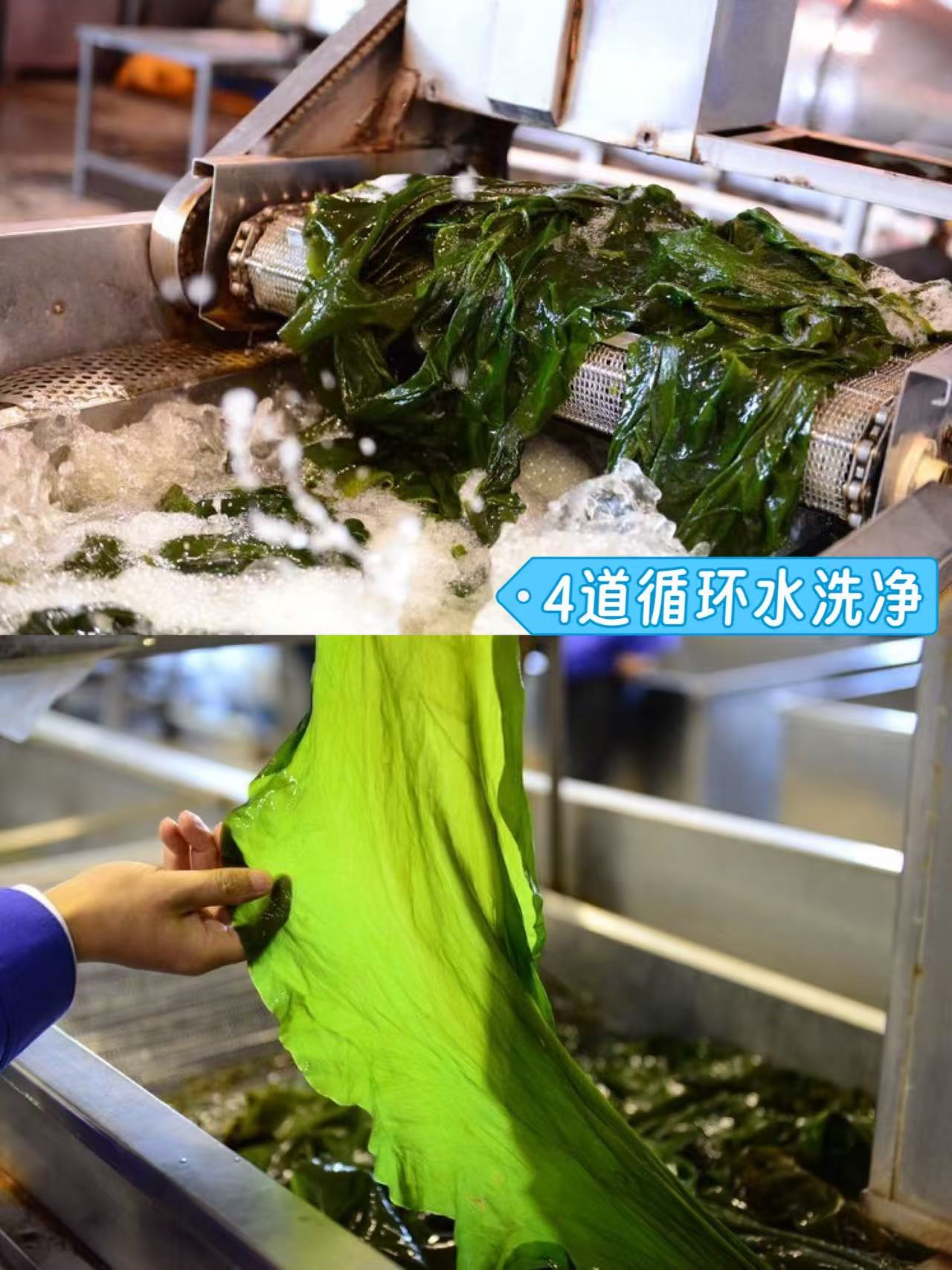 从采摘到加工全场不落地处理,24小时完成整个生产过程,保留海带自身鲜嫩口感,