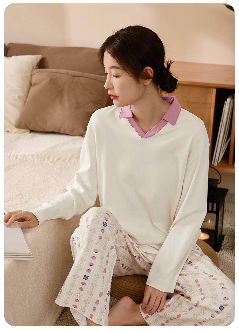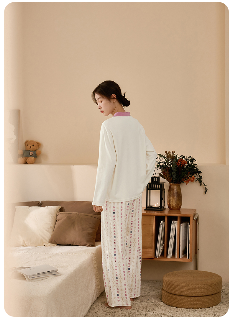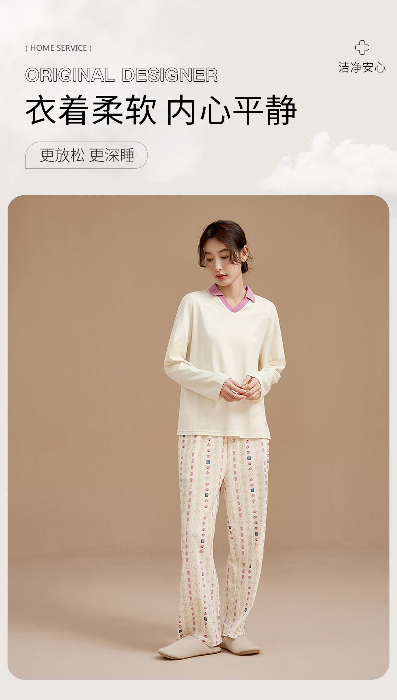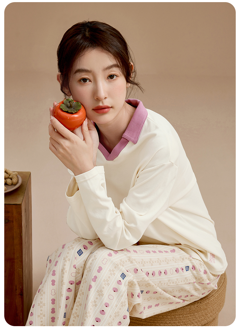 康妮雅睡衣女式长袖长裤套头套装
