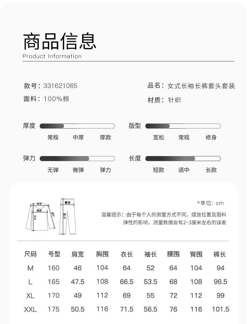 康妮雅女式长袖长裤套头套装