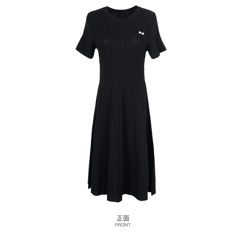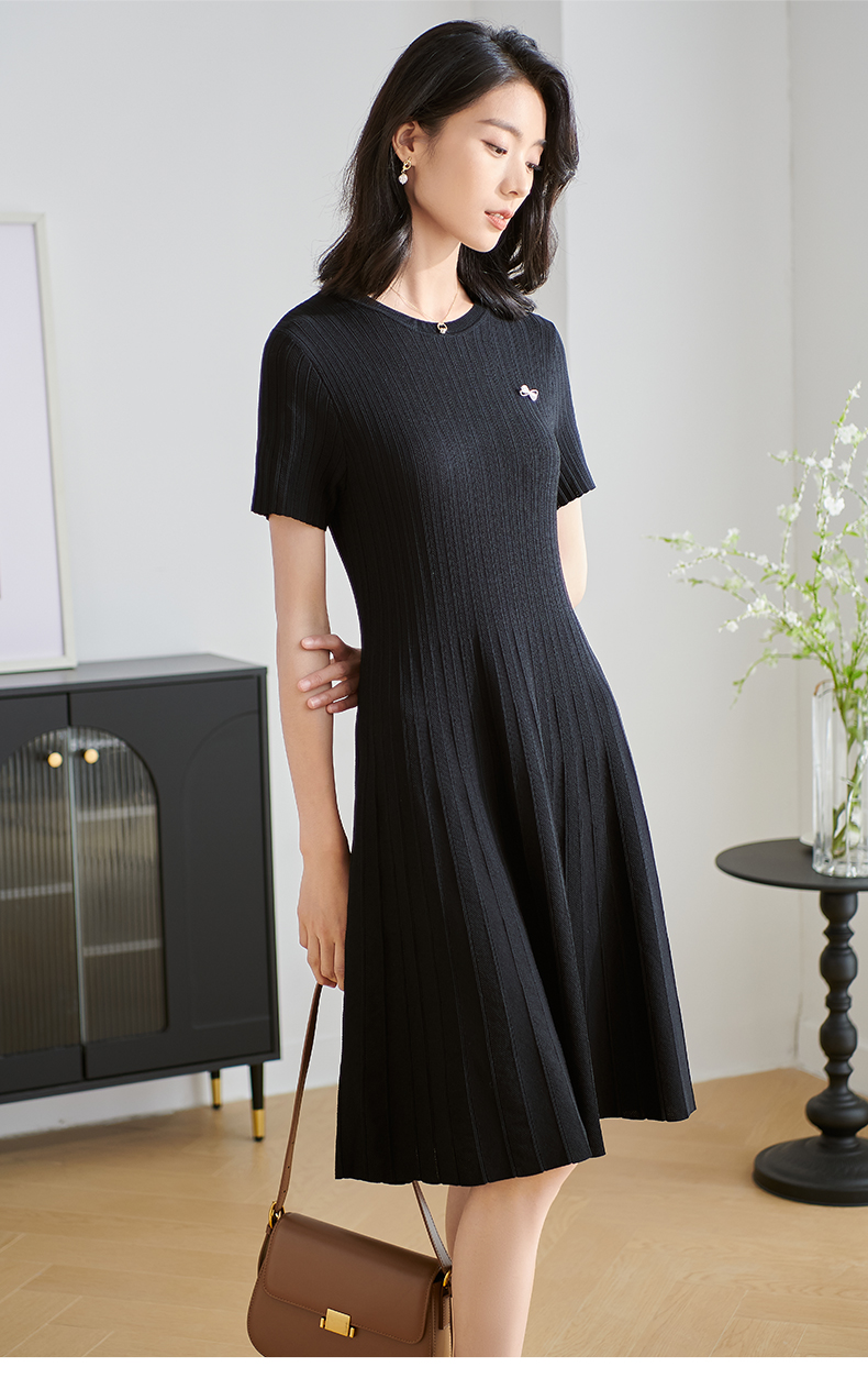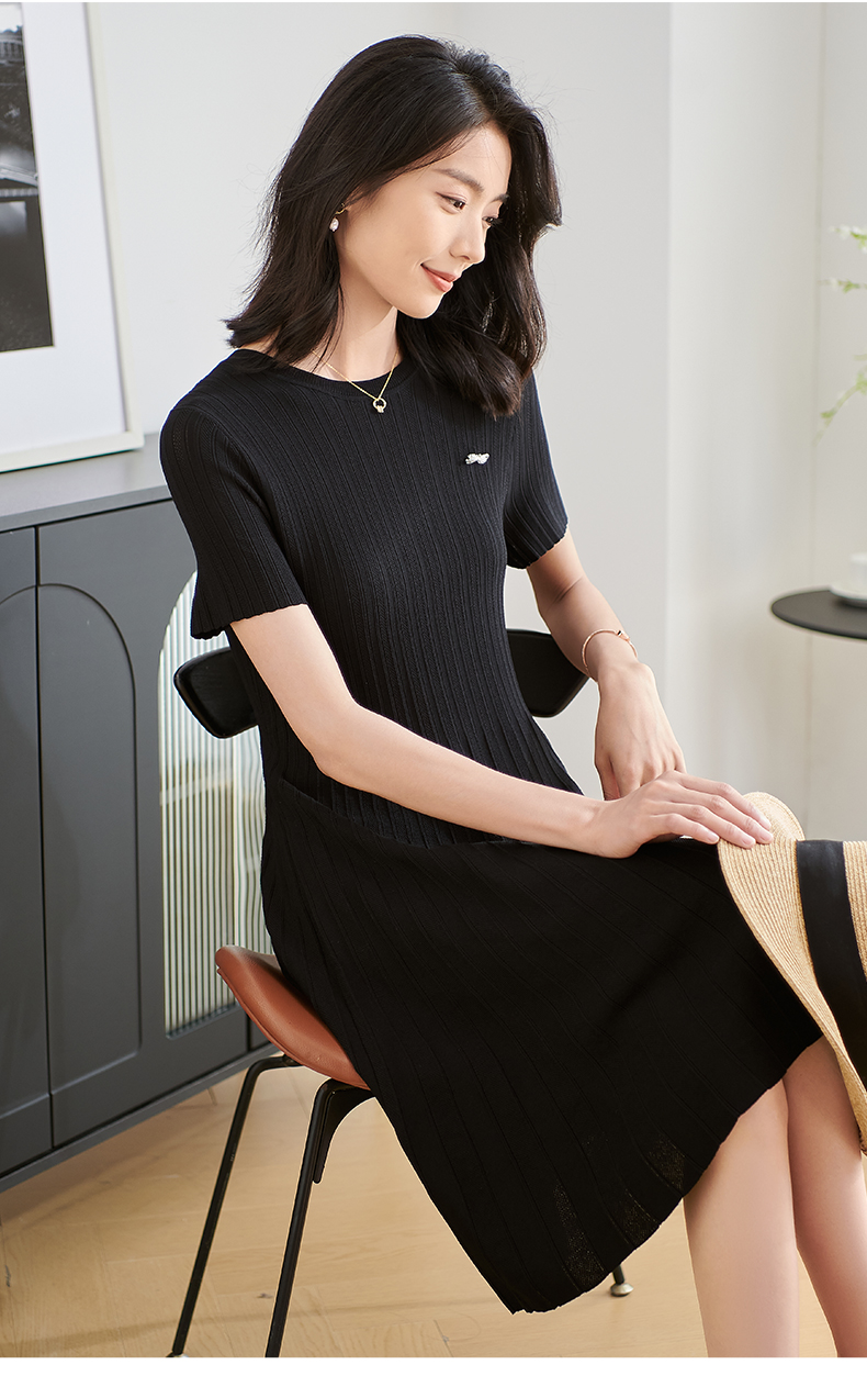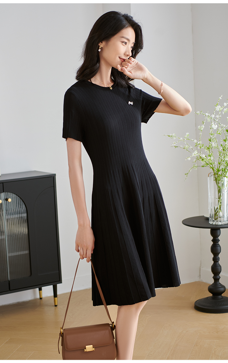 米思阳2025夏季新款知性优雅短袖连衣裙收腰修身圆领A字裙女2915