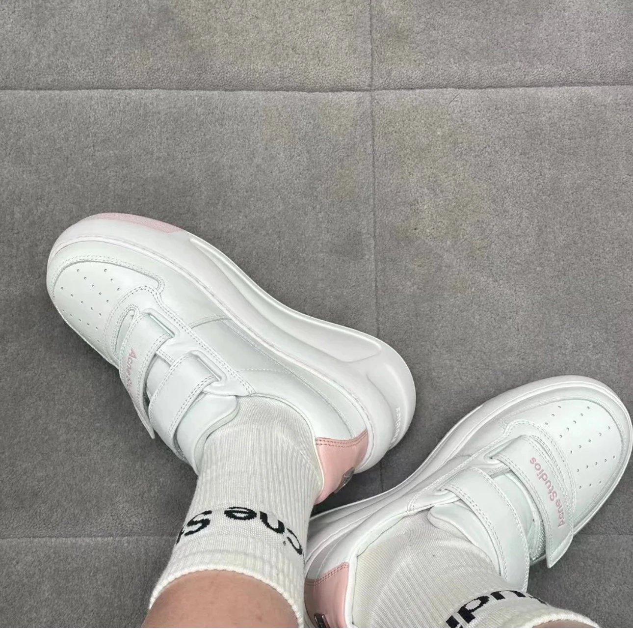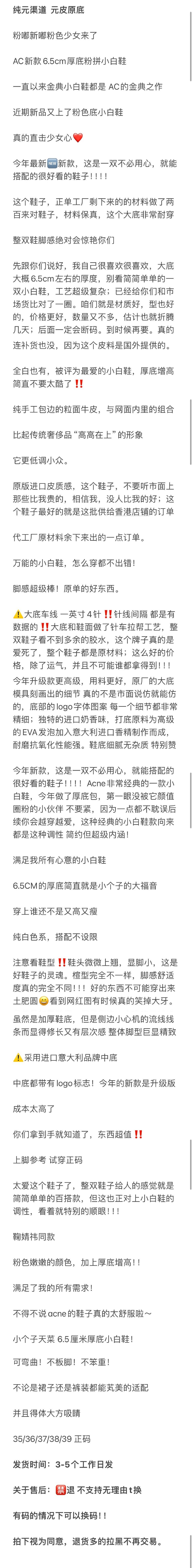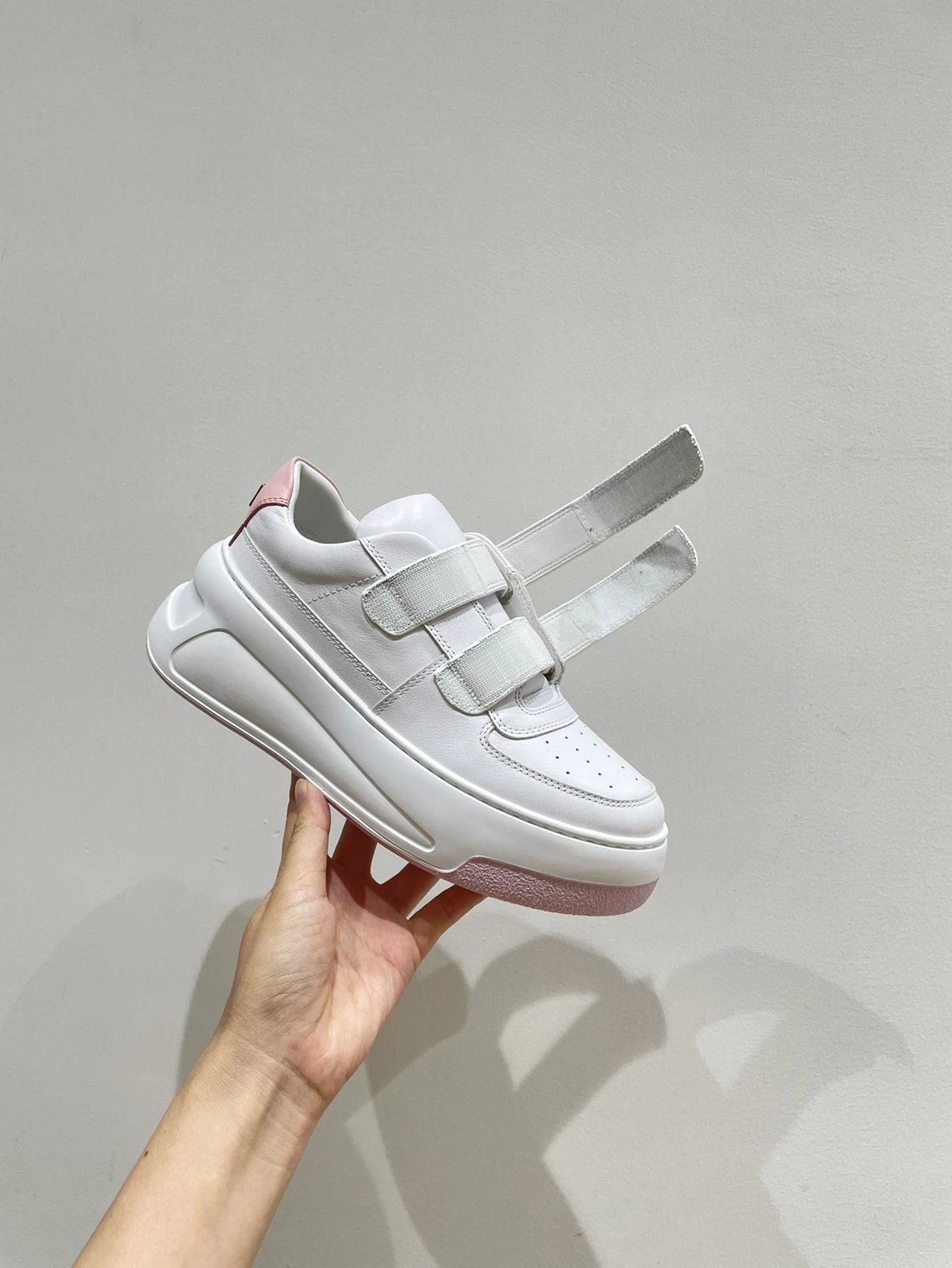重磅推荐 AC厚底魔术贴小白鞋 6.5cm增高笑脸魔术贴