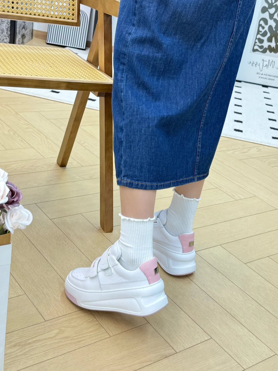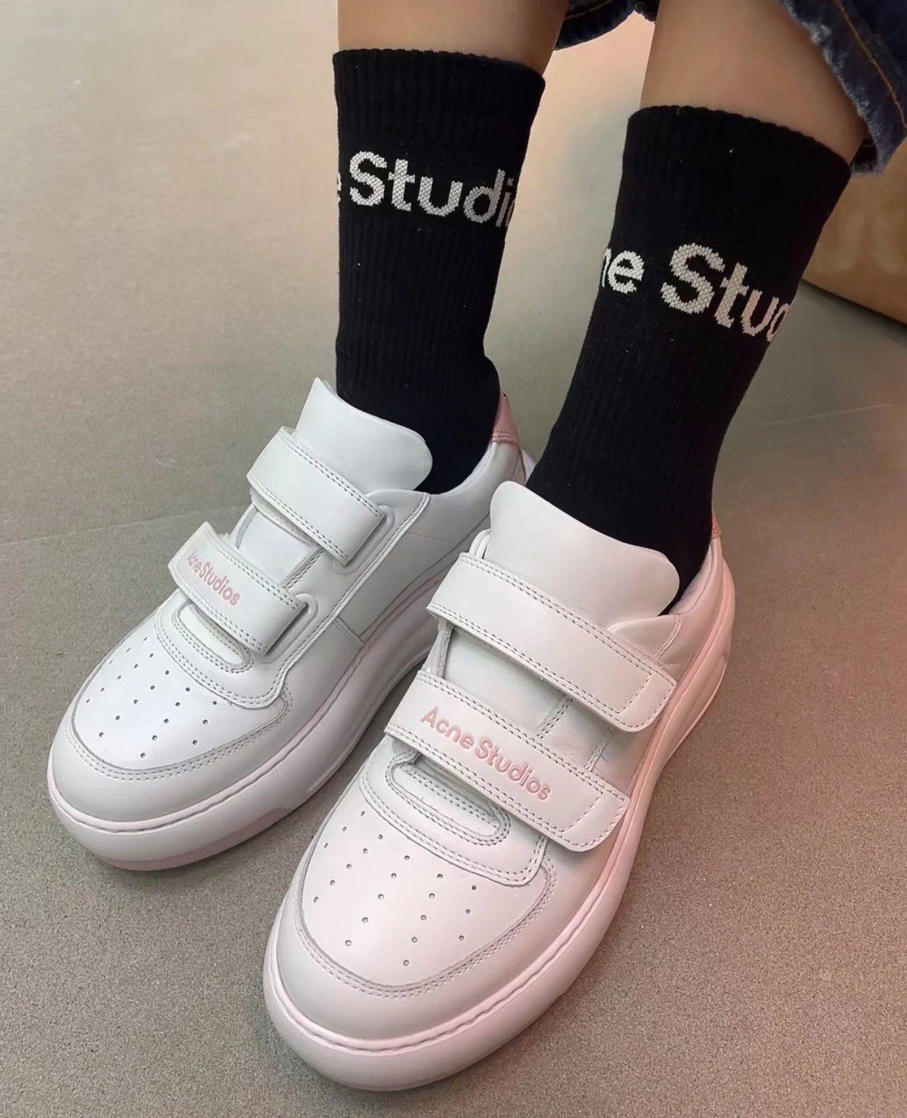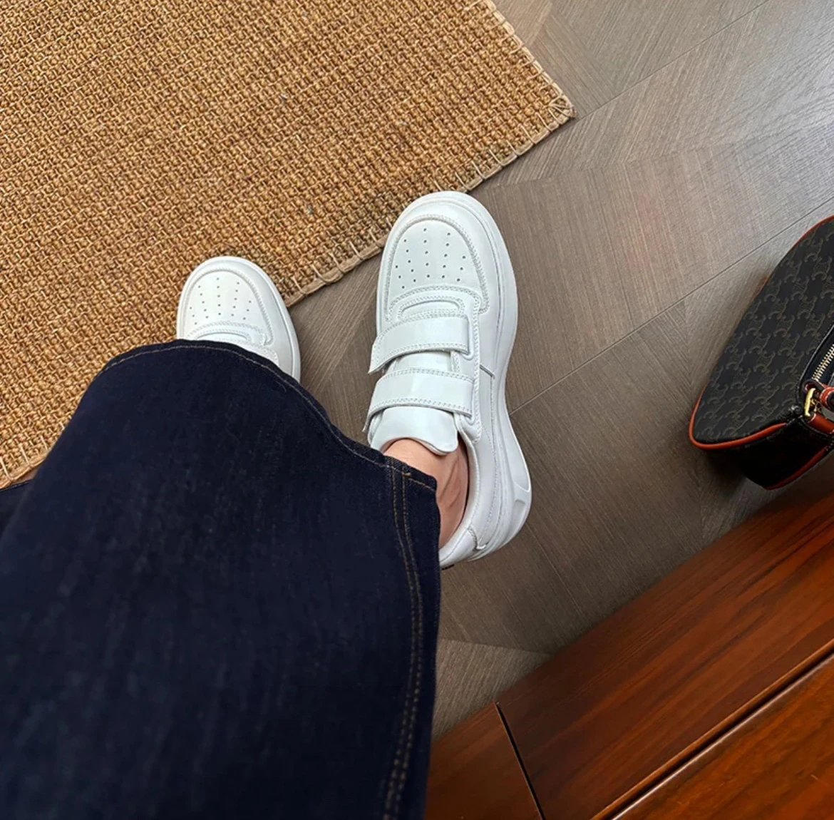 重磅推荐 AC厚底魔术贴小白鞋 6.5cm增高笑脸魔术贴
