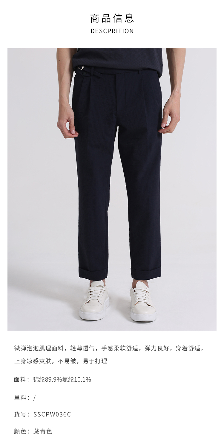 callisto藏青微弹泡泡肌理休闲裤 SSCPW036C