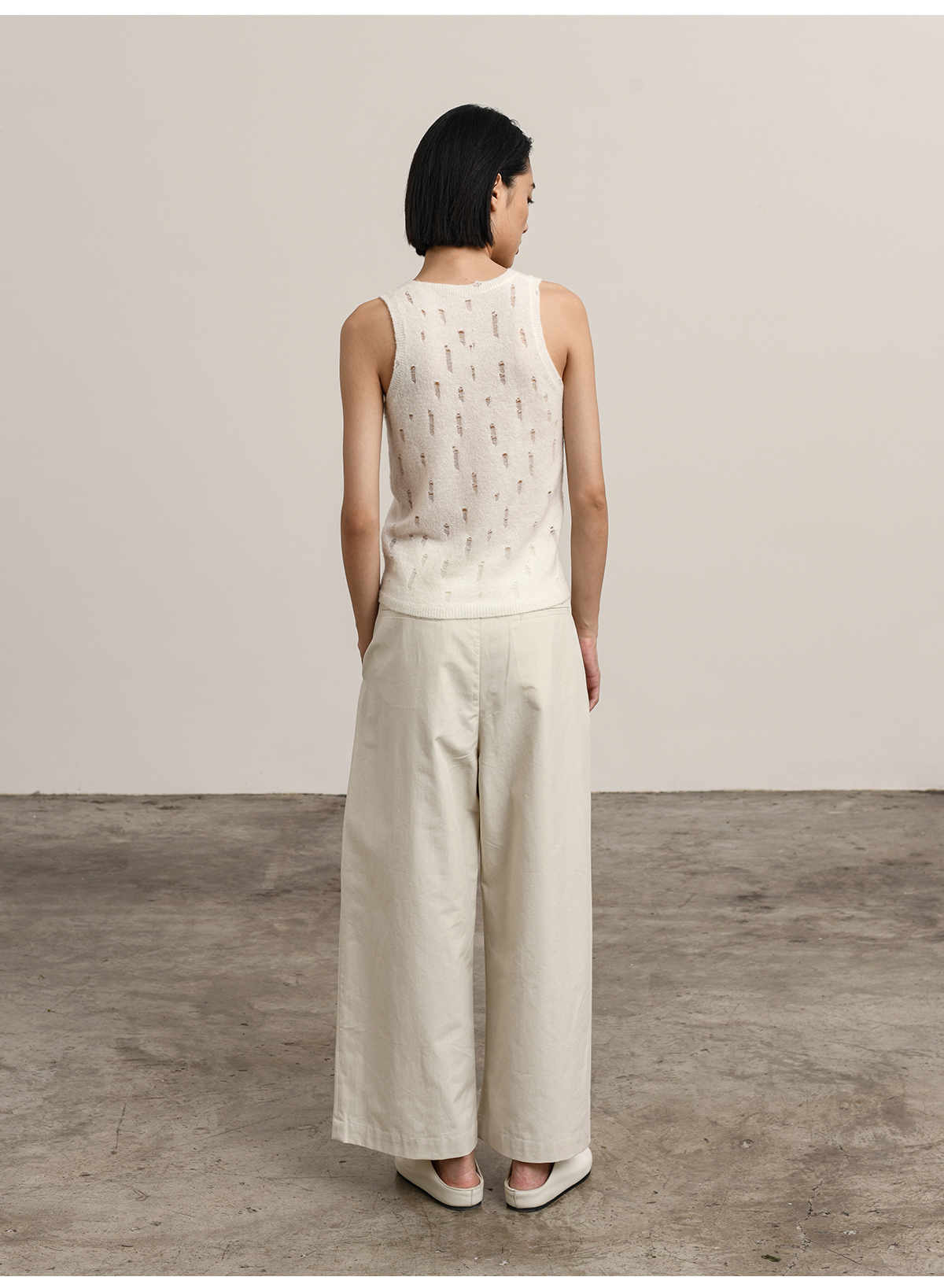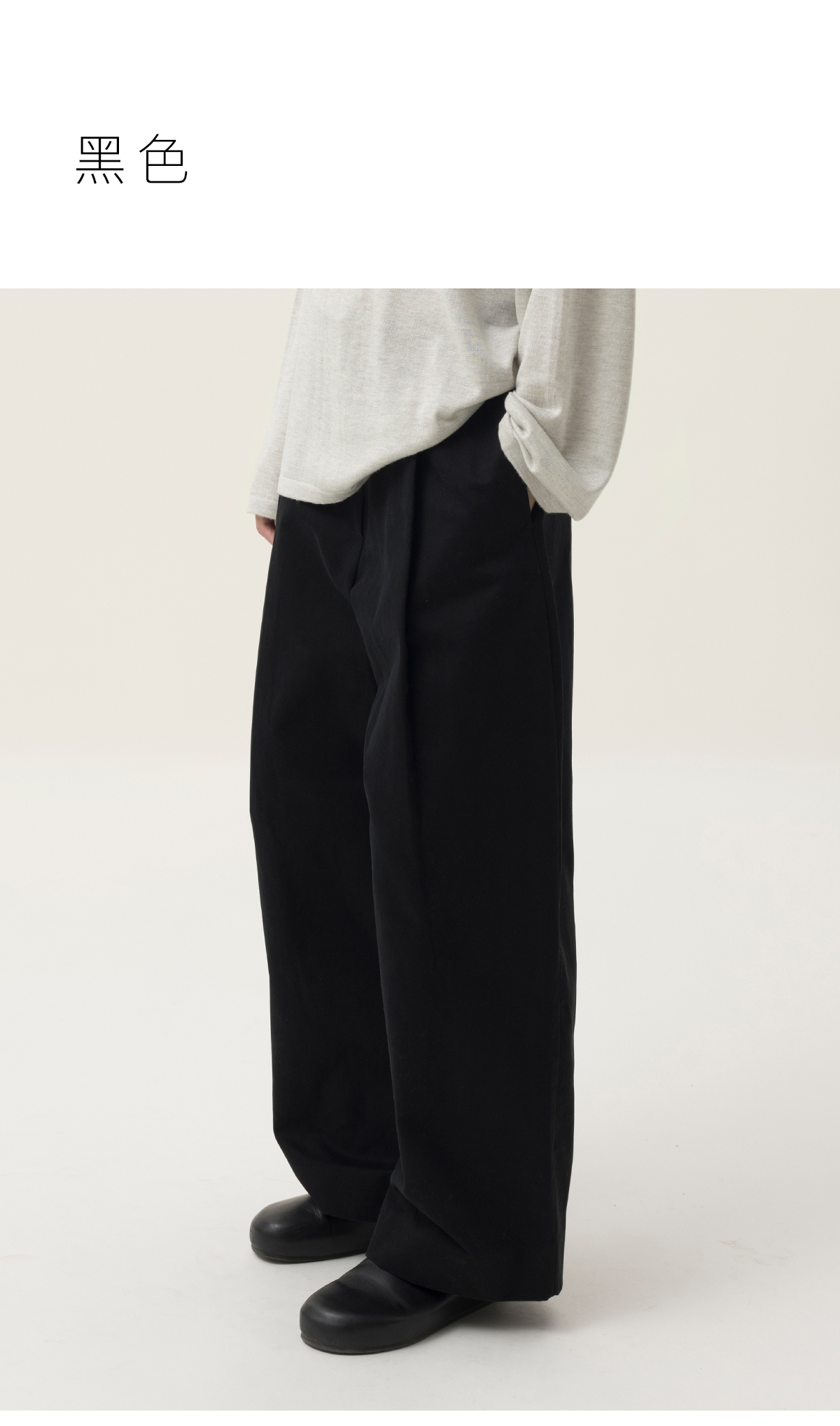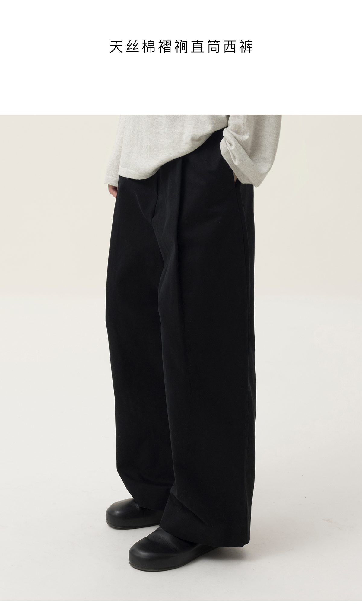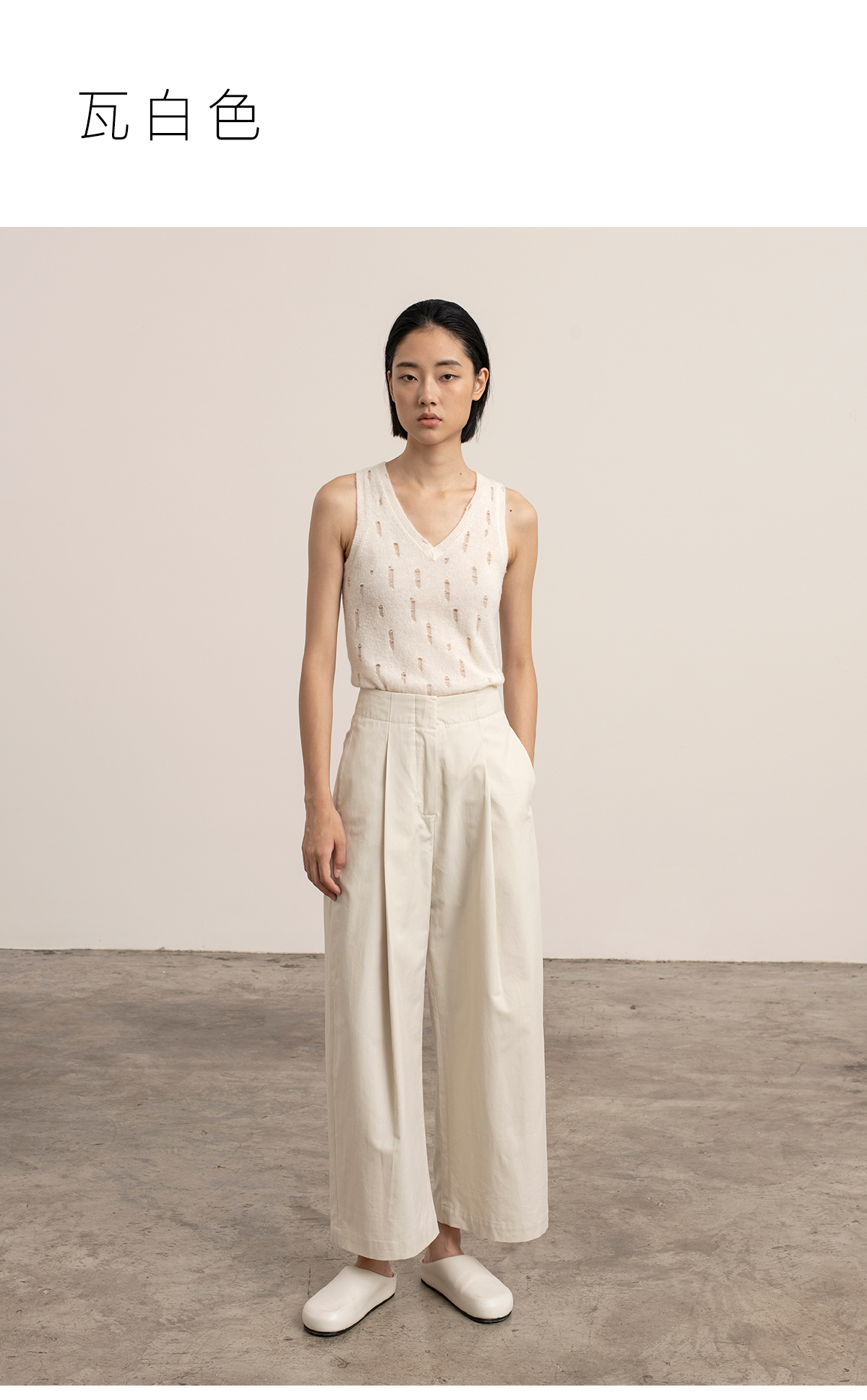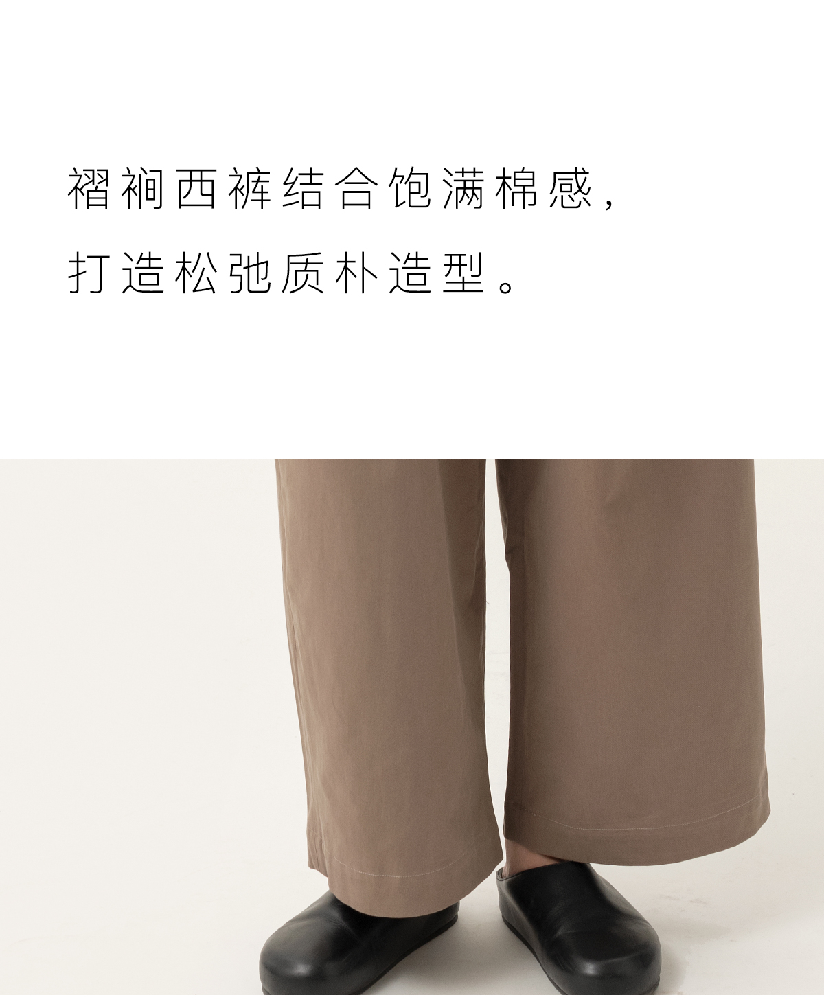 322工房搭配衣橱女士褶裥西裤2023春夏款棉混纺阔腿休闲裤子B115