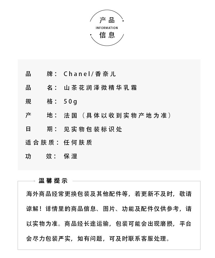 Chanel香奈儿山茶花润泽微精华乳霜50g 补水清爽保湿(CDF)