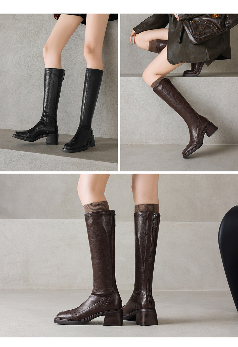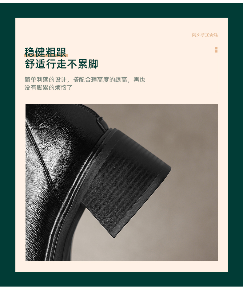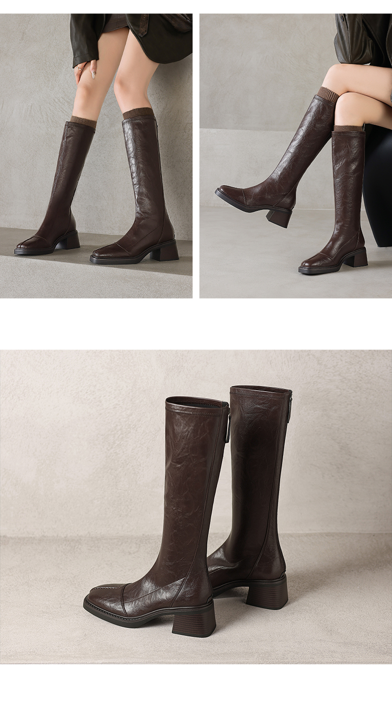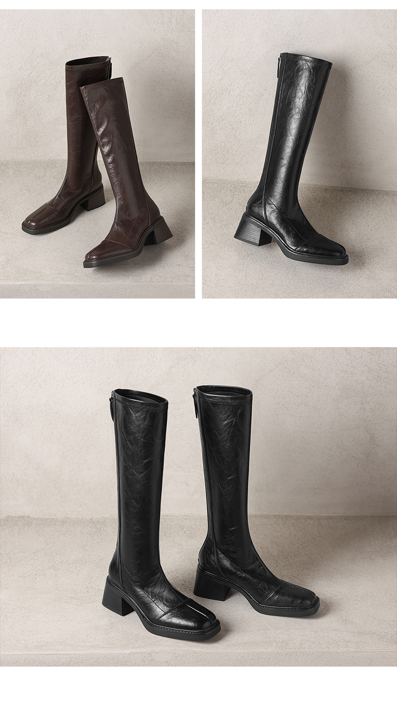 阿么手工女鞋秋冬粗跟弹力长靴女小个子百搭显瘦不过膝高筒靴6CM