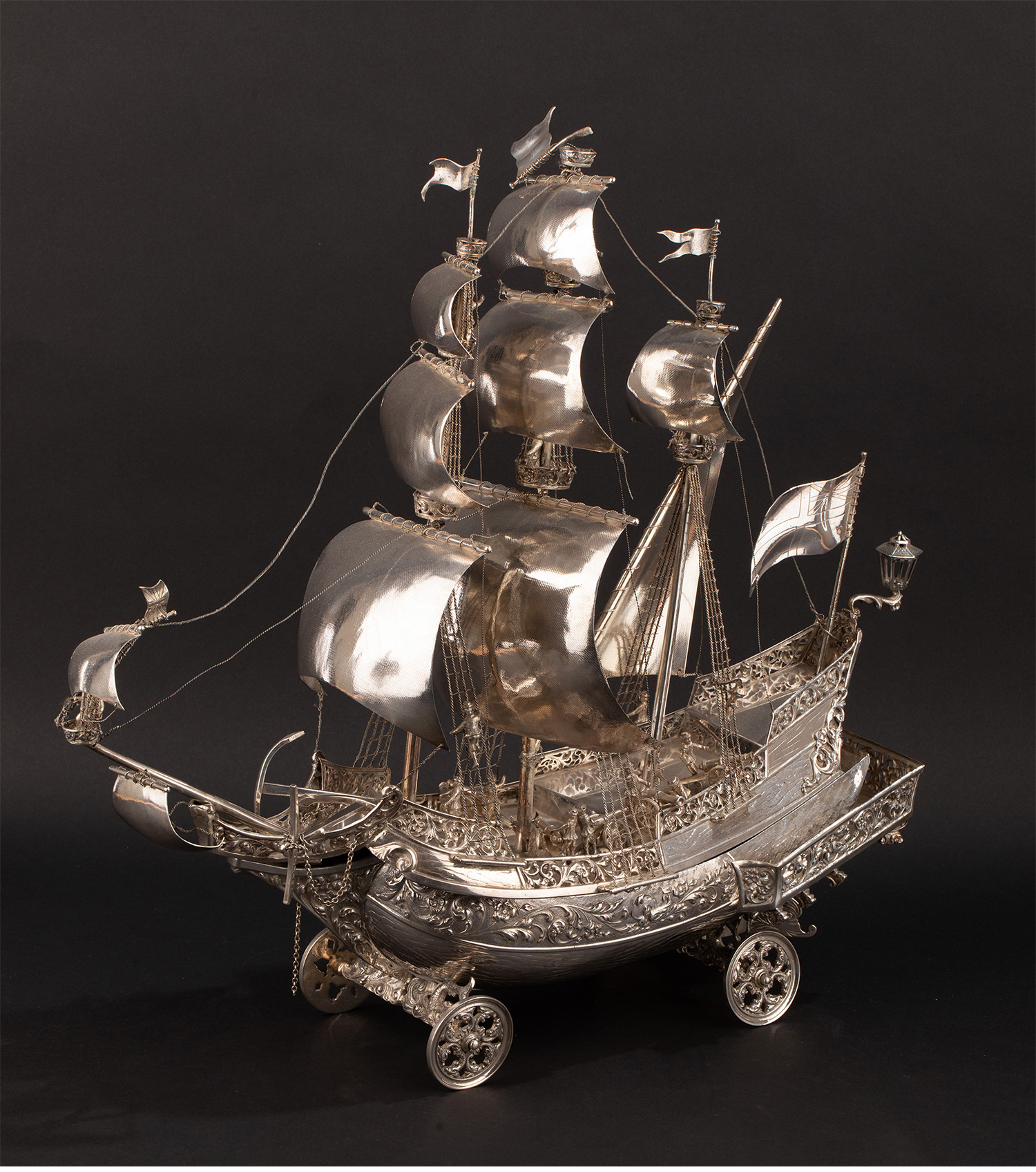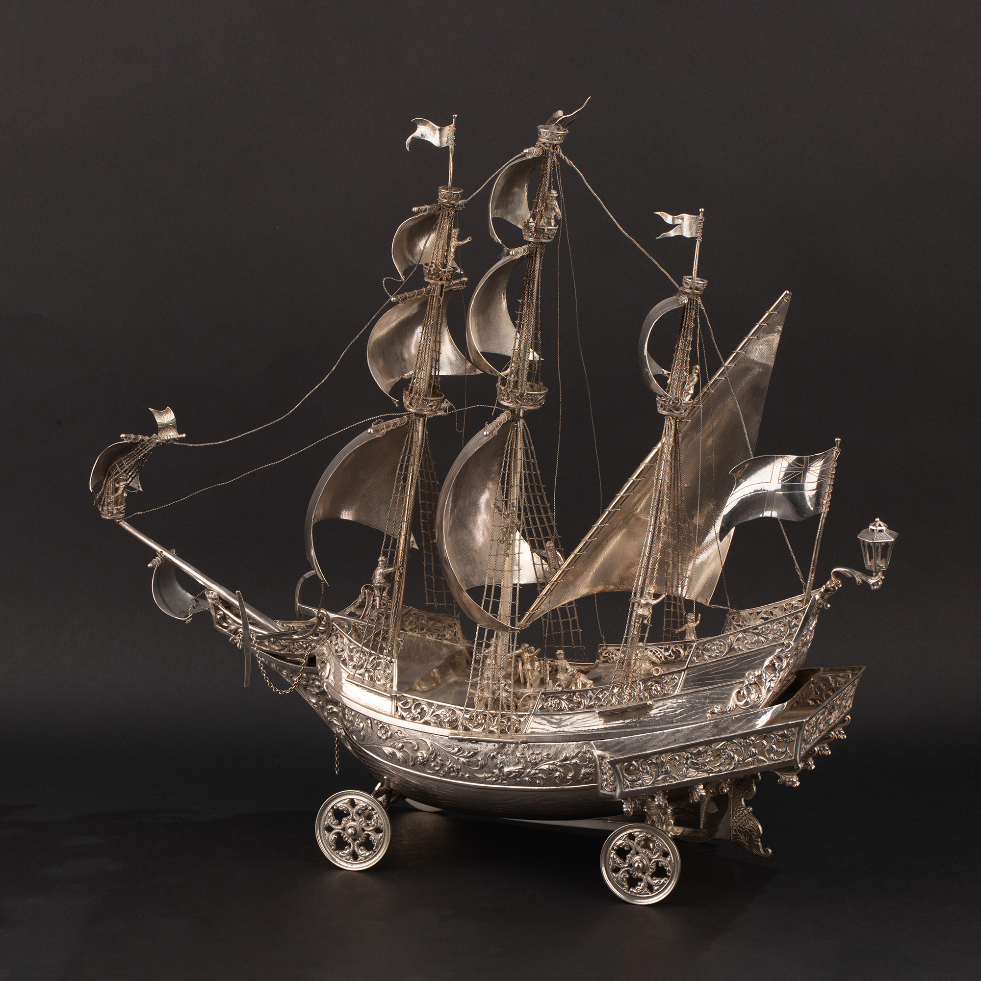 1927年德国出品纯银精雕帆船摆件