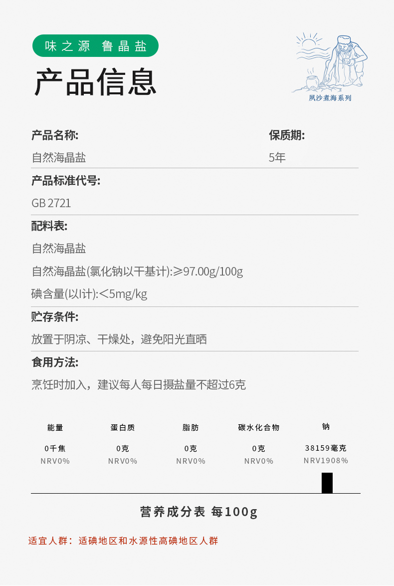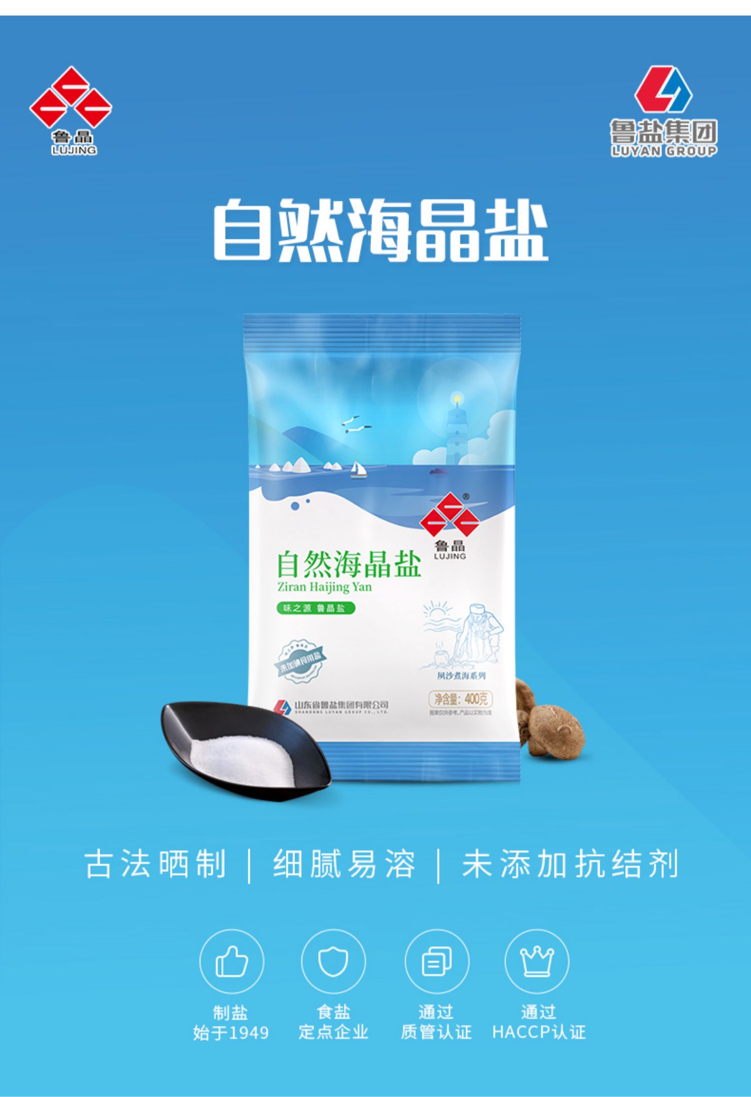 400g 鲁晶 自然海晶盐 未加碘食用盐 家用食用盐调味品
