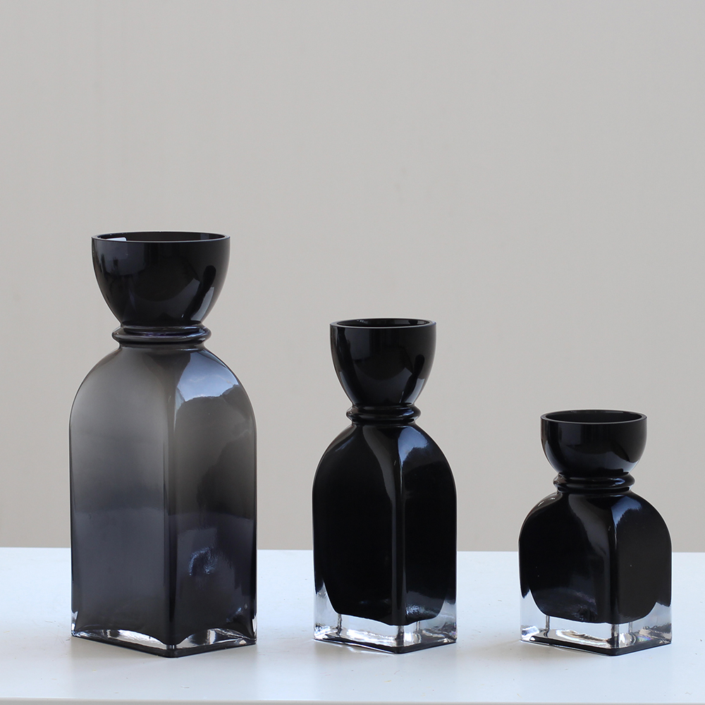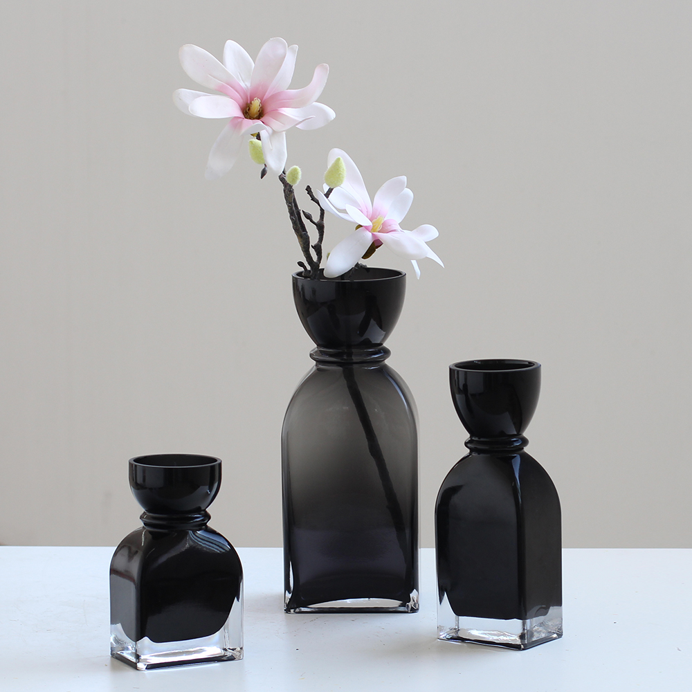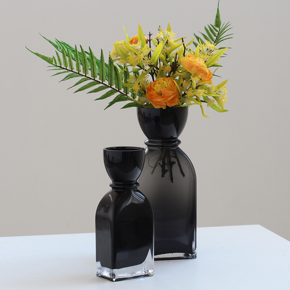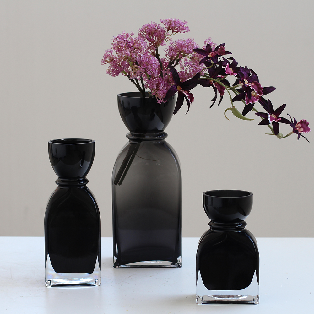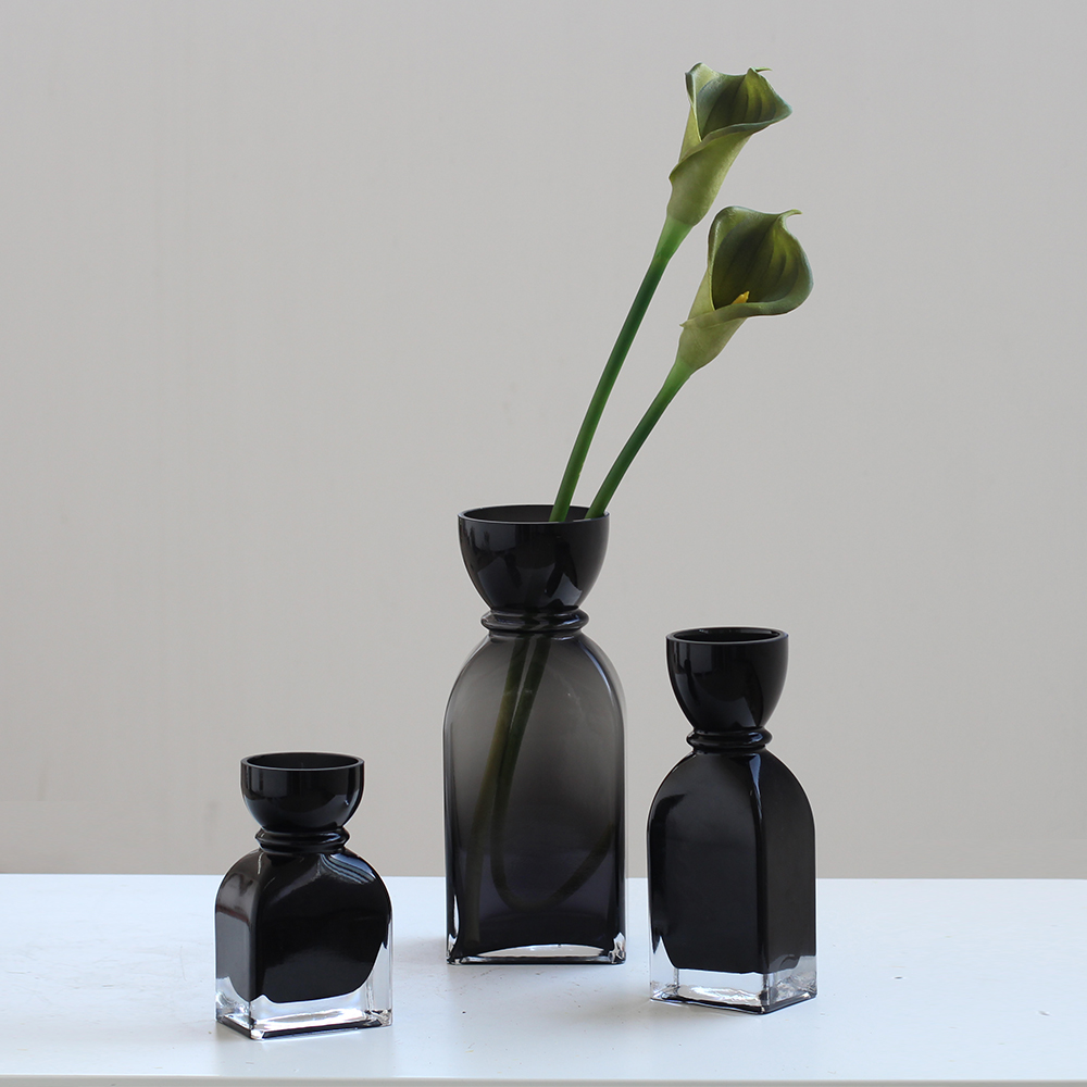 轻奢创意小口吹制黑色玻璃花瓶插花鲜花客厅餐桌酒店样板间装饰品