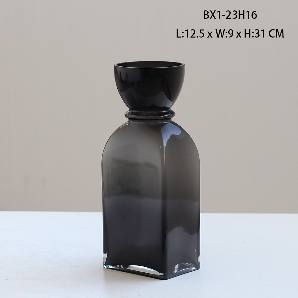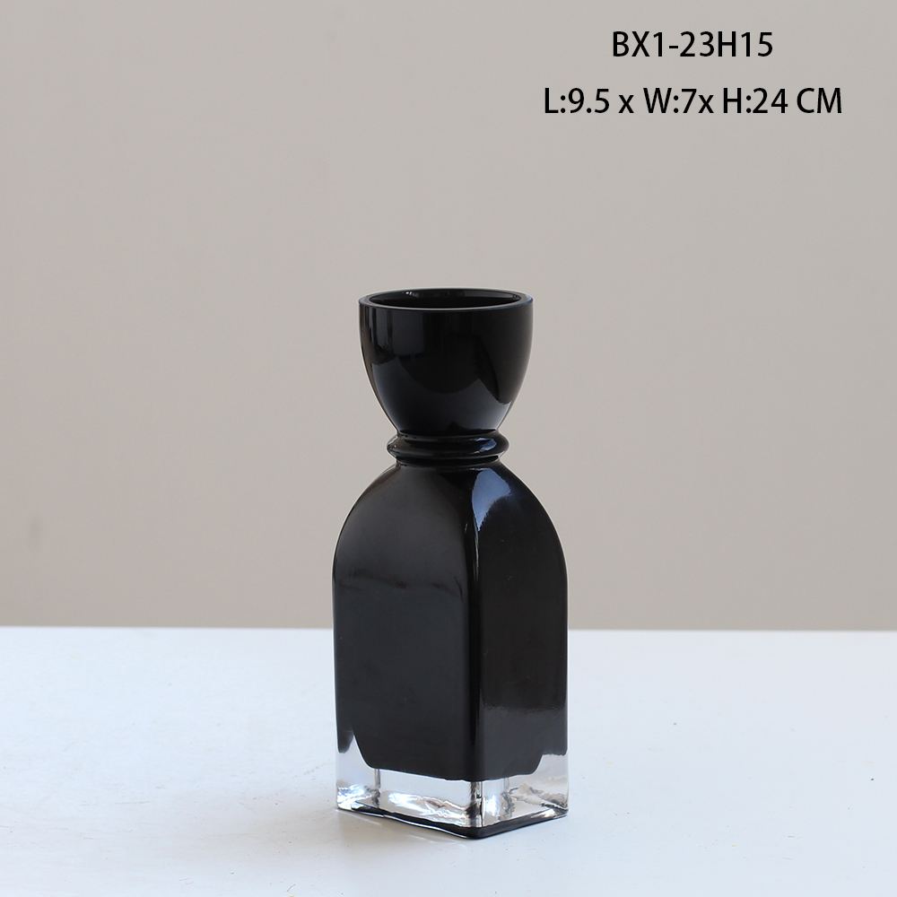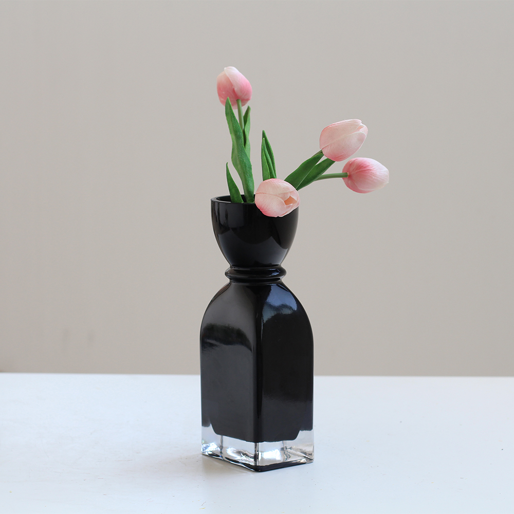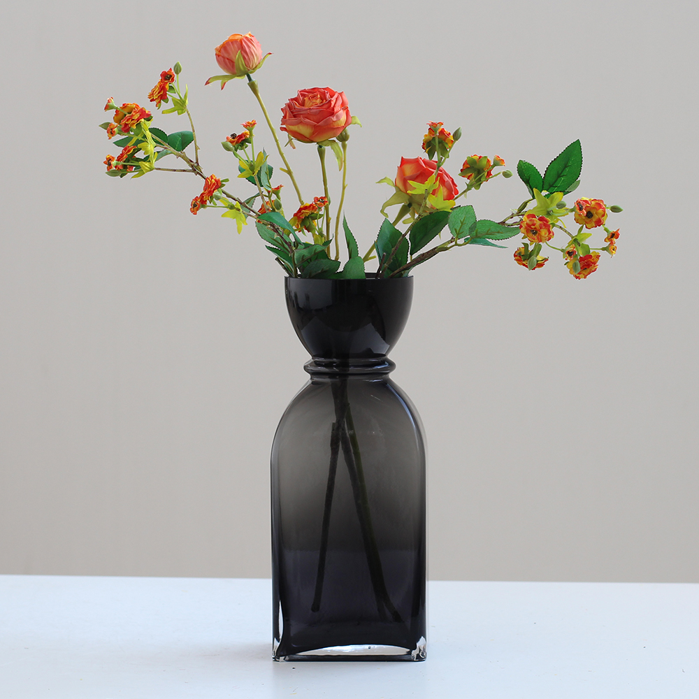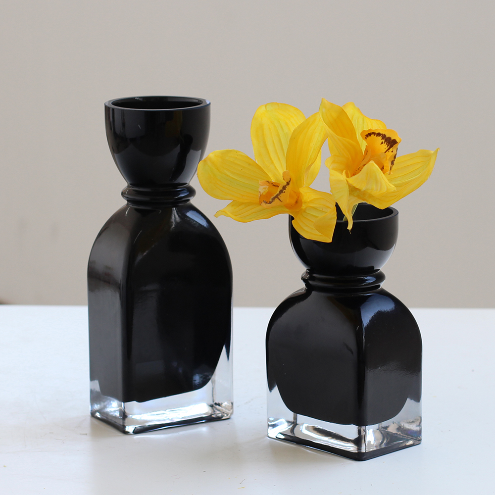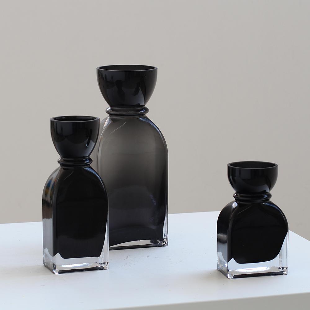 轻奢创意小口吹制黑色玻璃花瓶插花鲜花客厅餐桌酒店样板间装饰品