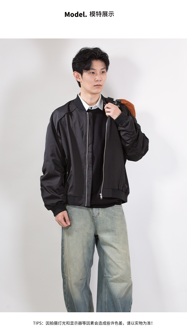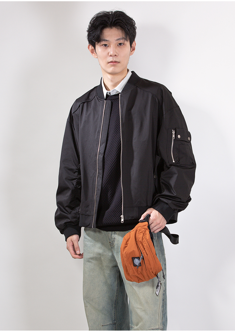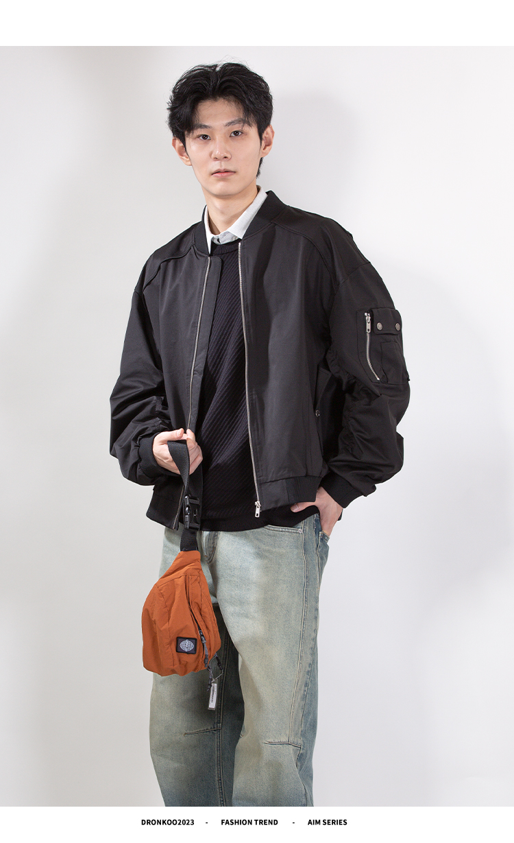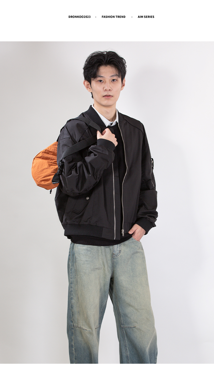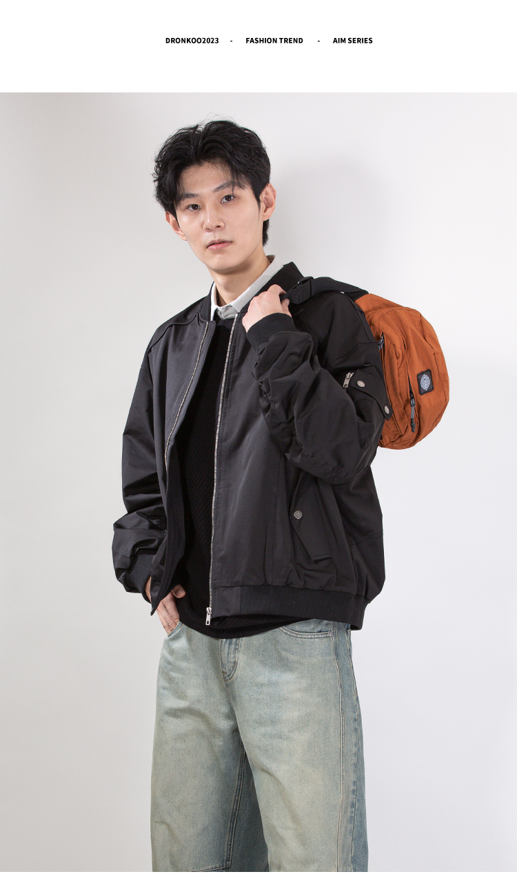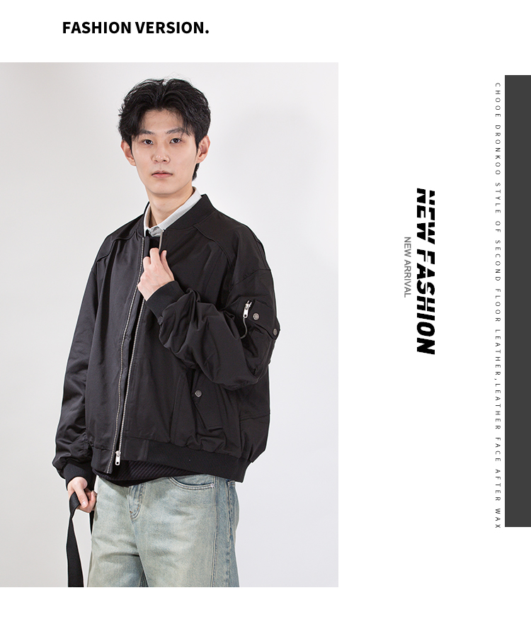DRONKOO 2025 棒球领斜口袋袋盖左袖金属拉链贴袋中厚夹克