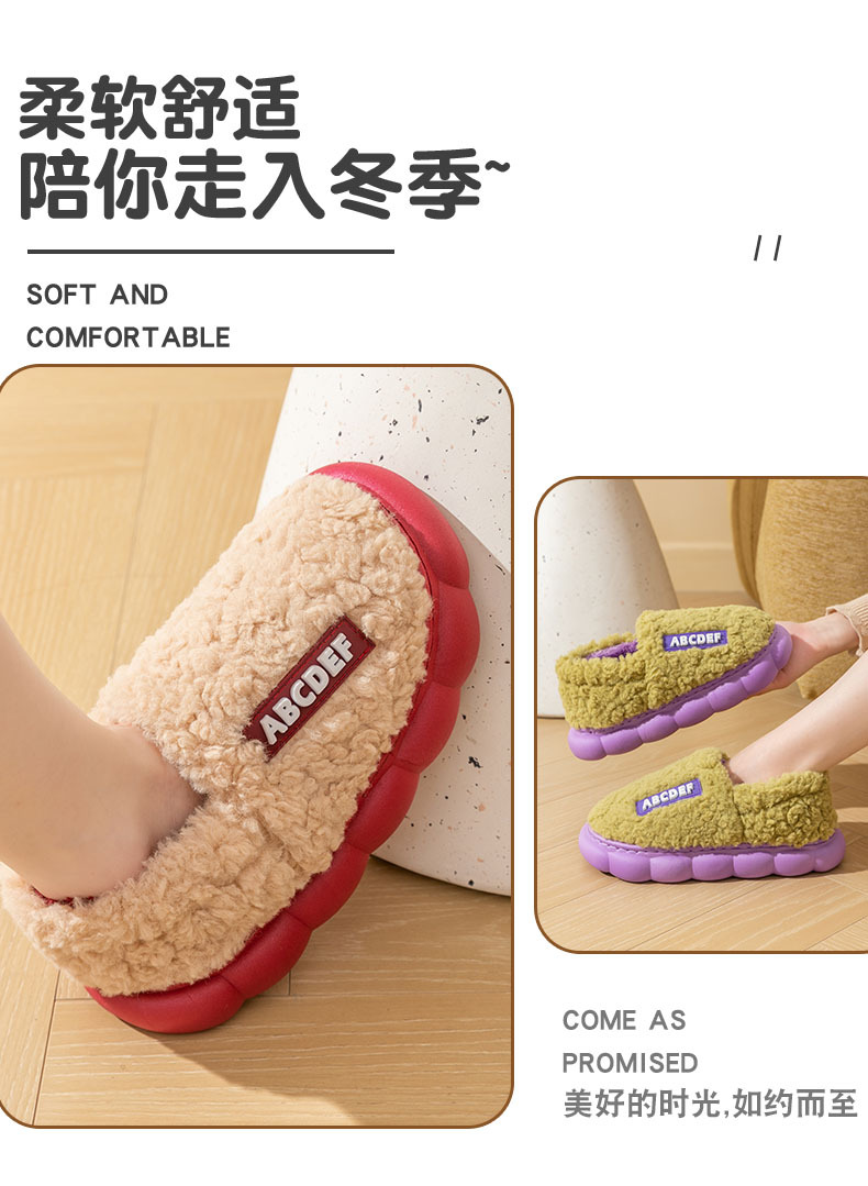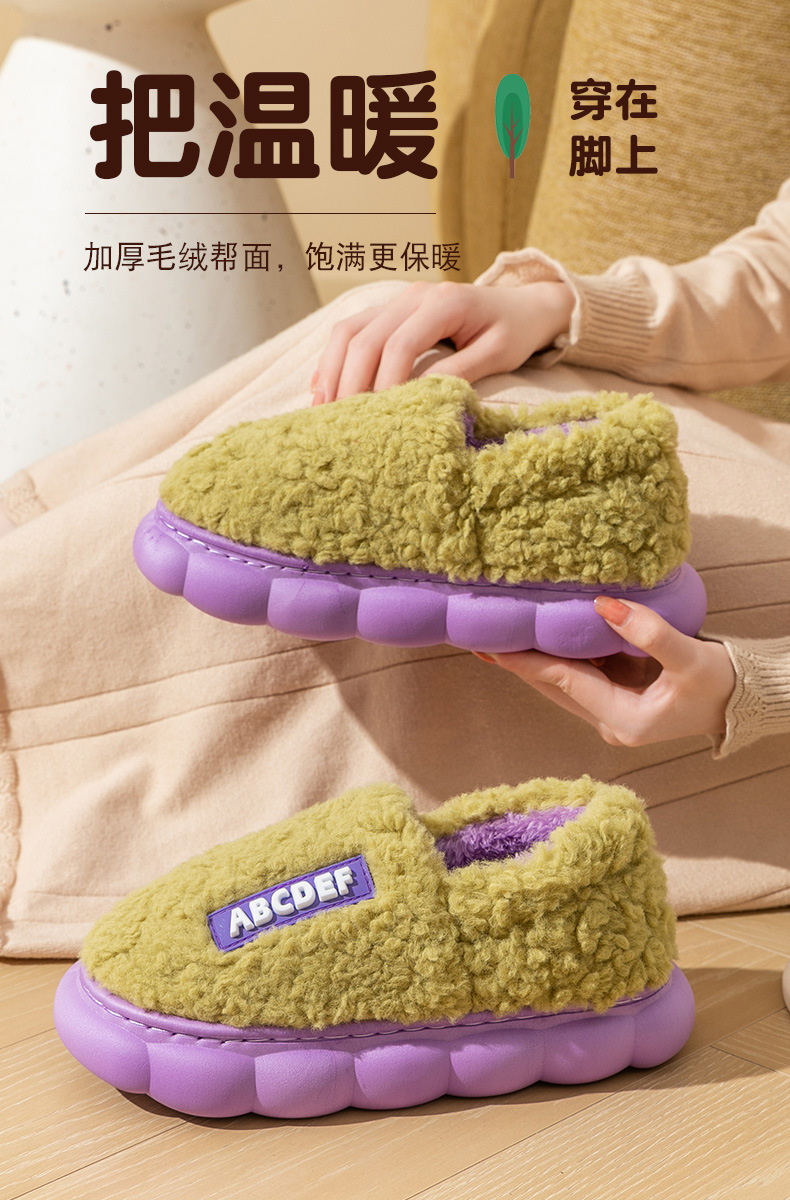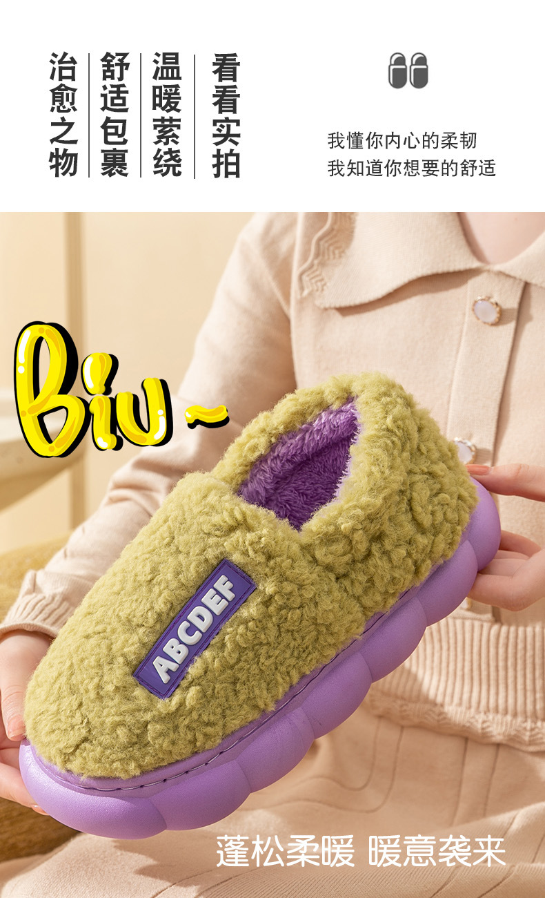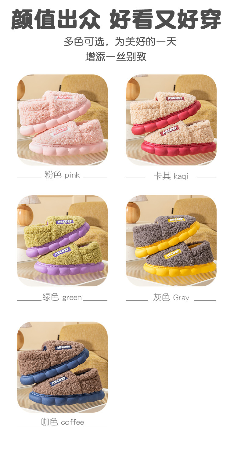 「五色可选!加厚毛毛绒」时尚字母棉拖鞋 女冬季居家厚底保暖情侣包跟棉拖鞋男士