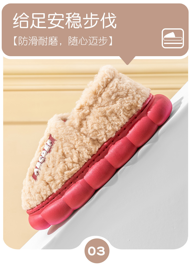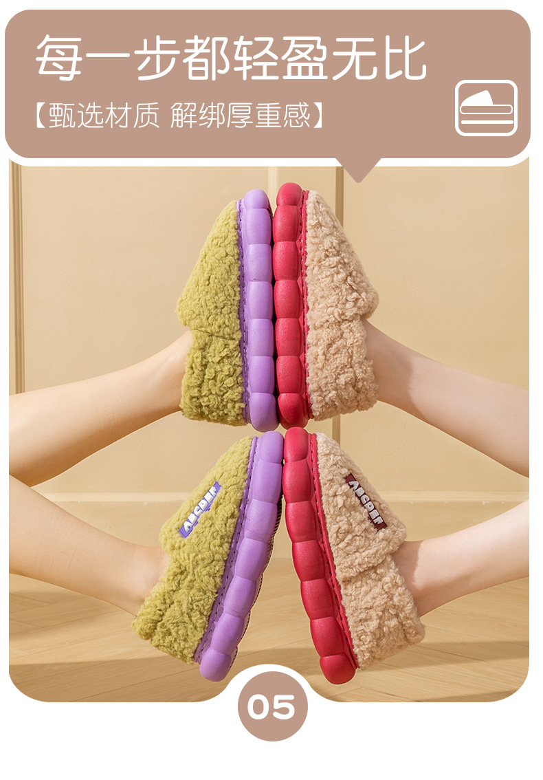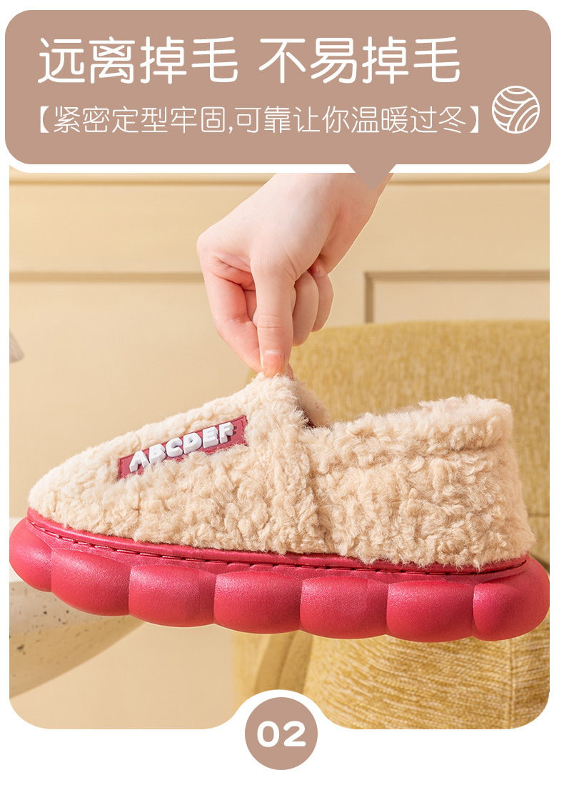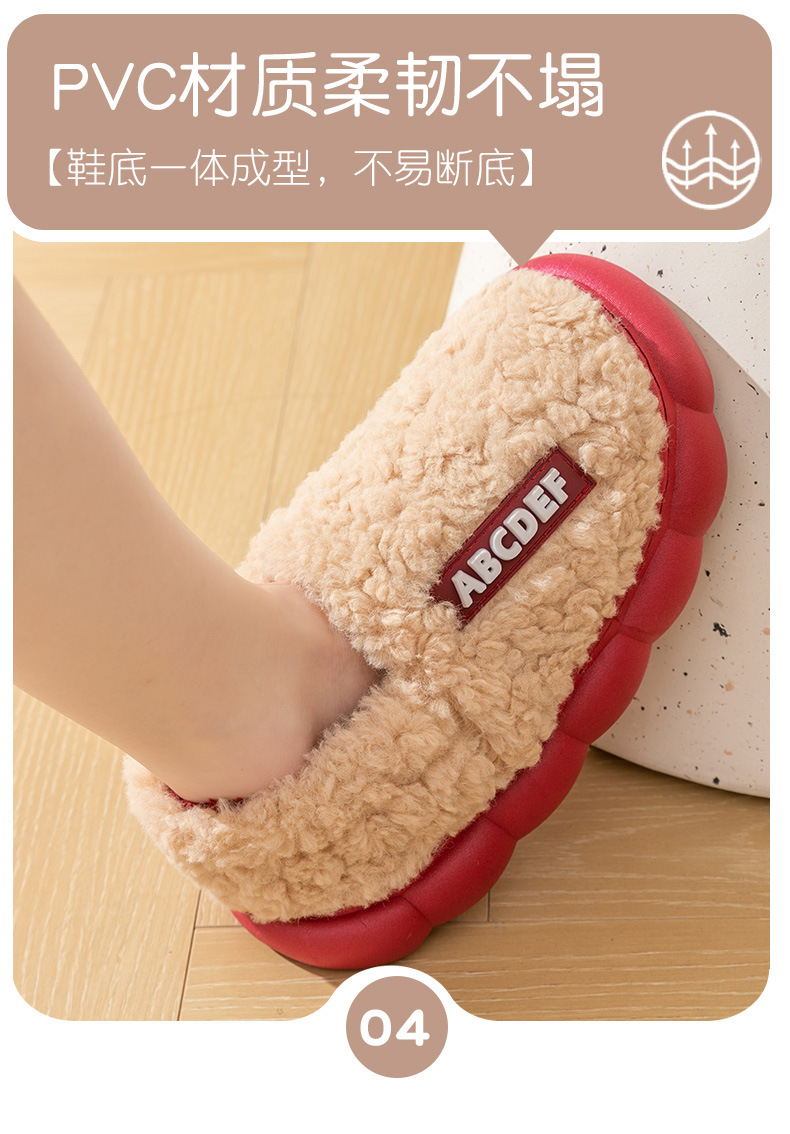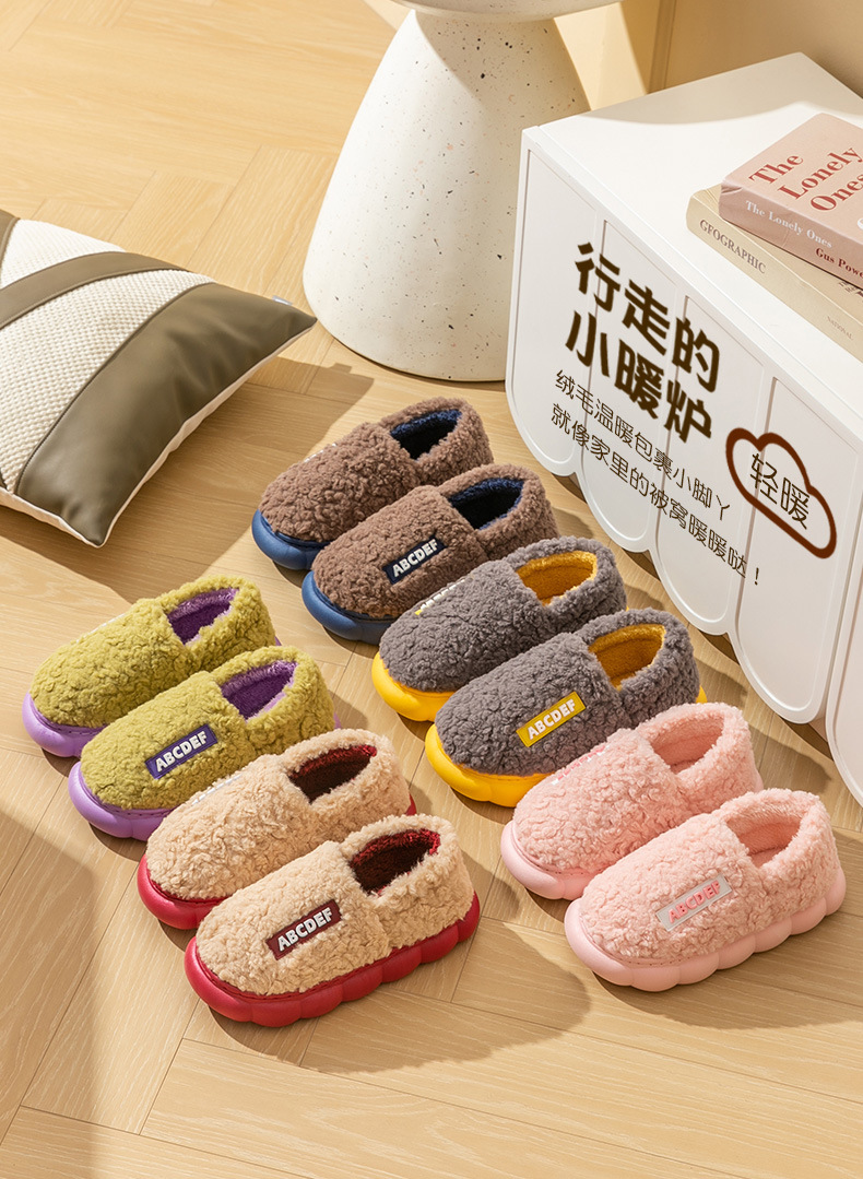 「五色可选!加厚毛毛绒」时尚字母棉拖鞋 女冬季居家厚底保暖情侣包跟棉拖鞋男士
