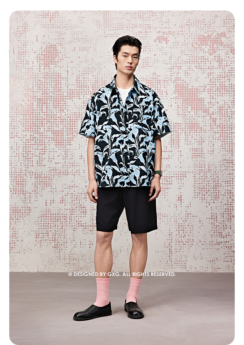 GXG男装 度假风衬衫轻薄短袖休闲25夏热卖G25X232012