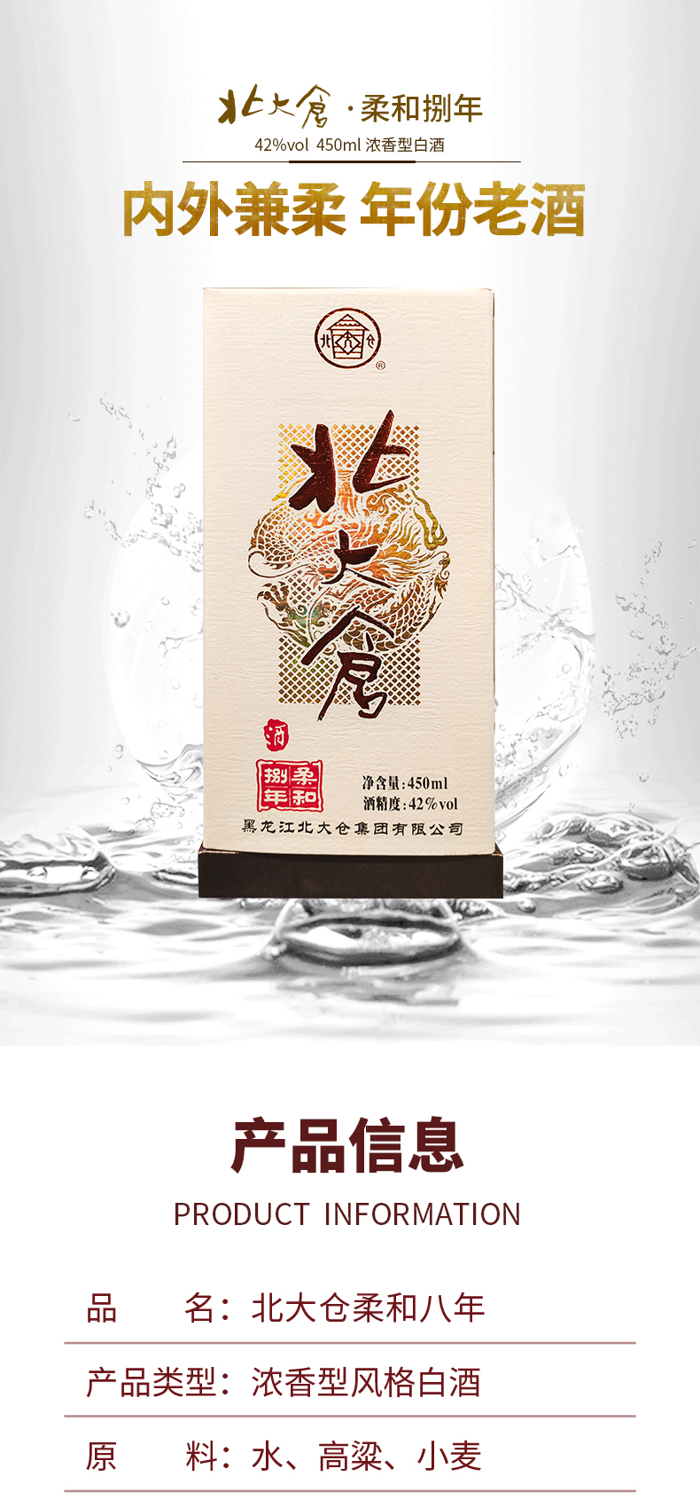 【浓香型】北大仓柔和八年白酒450ml 42度