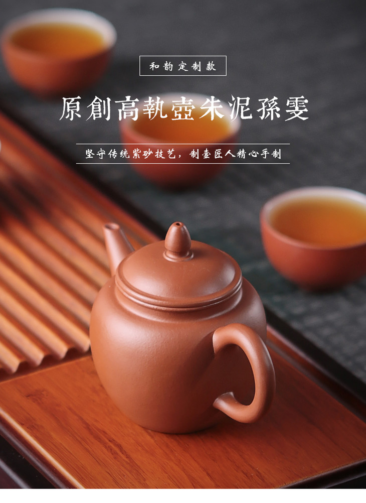 【紫砂壶】【朱泥孙雯】【原创高执壶】紫砂壶 家用紫泥如意西施泡茶壶茶具