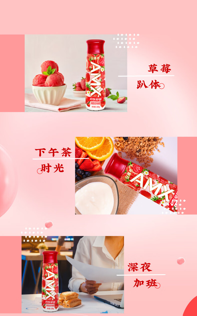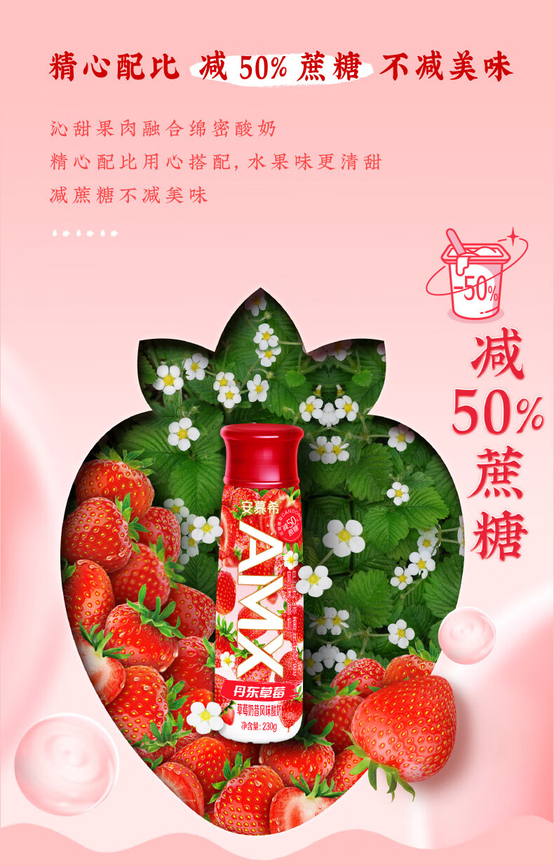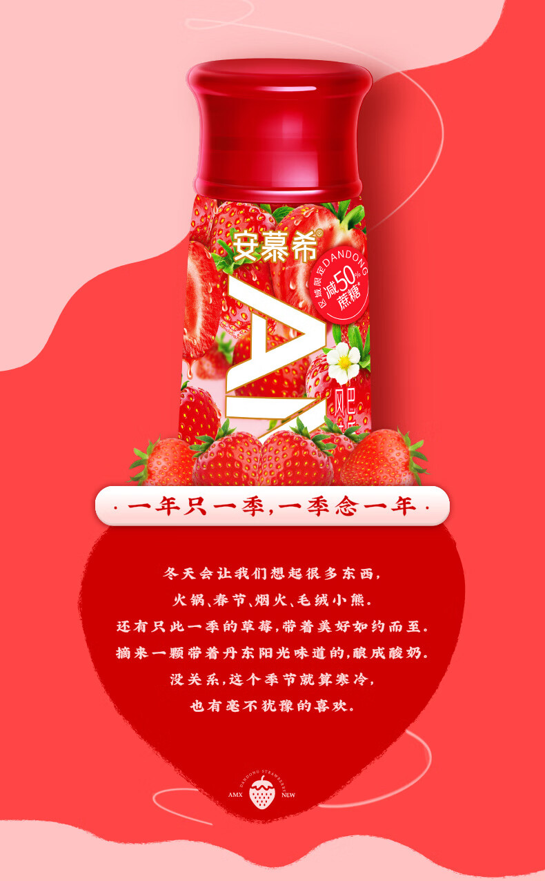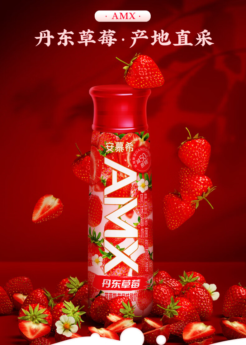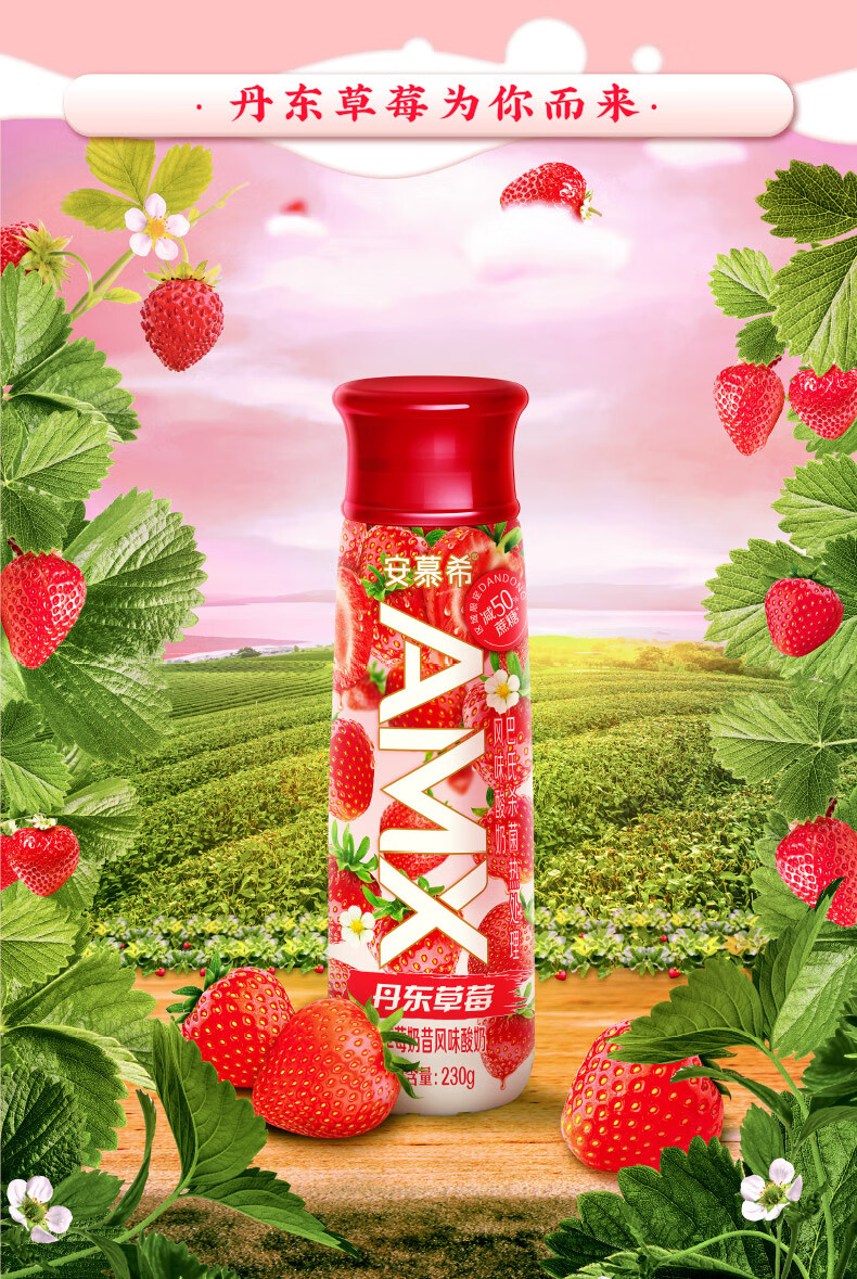 伊利 安慕希 AMX丹东草莓奶昔风味酸奶 230g*10瓶/箱 减50%蔗糖 年货 礼盒 包邮