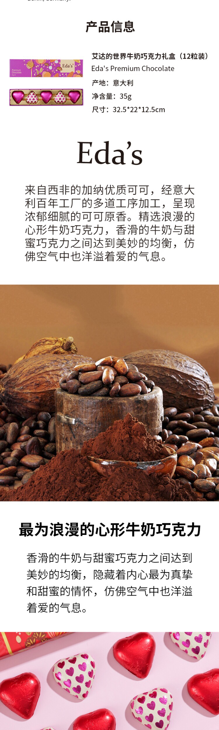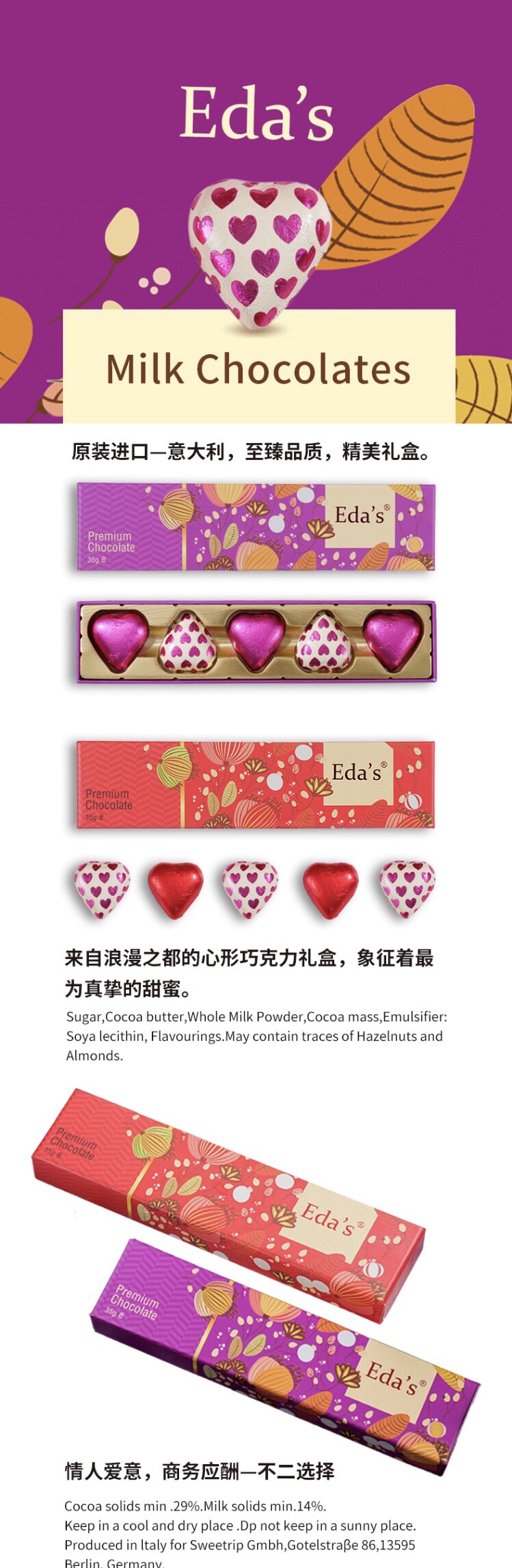 意大利原装进口Eda's艾达牛奶巧克力礼盒商务情人礼盒35g-会员6折