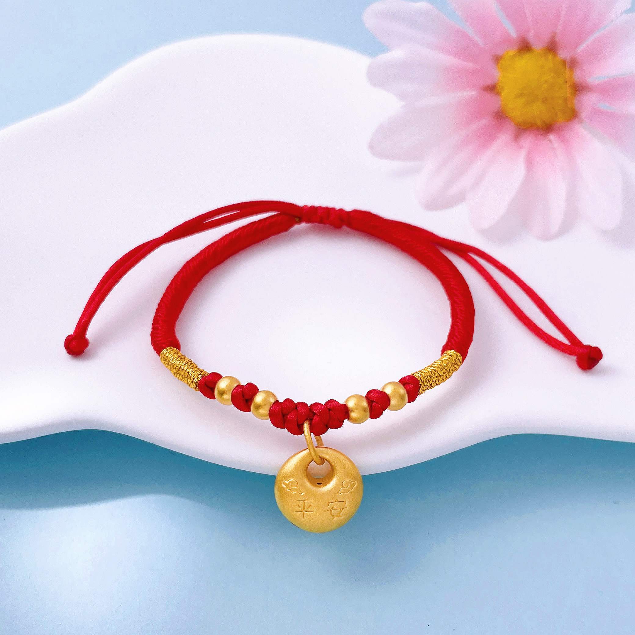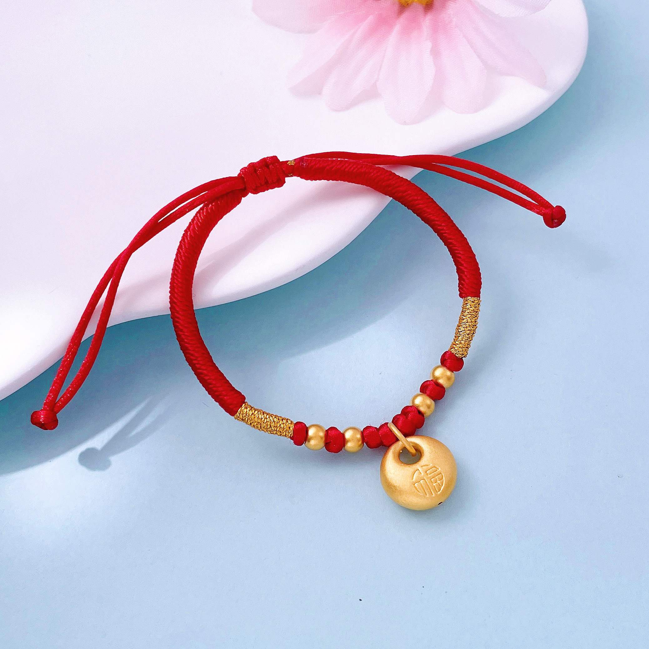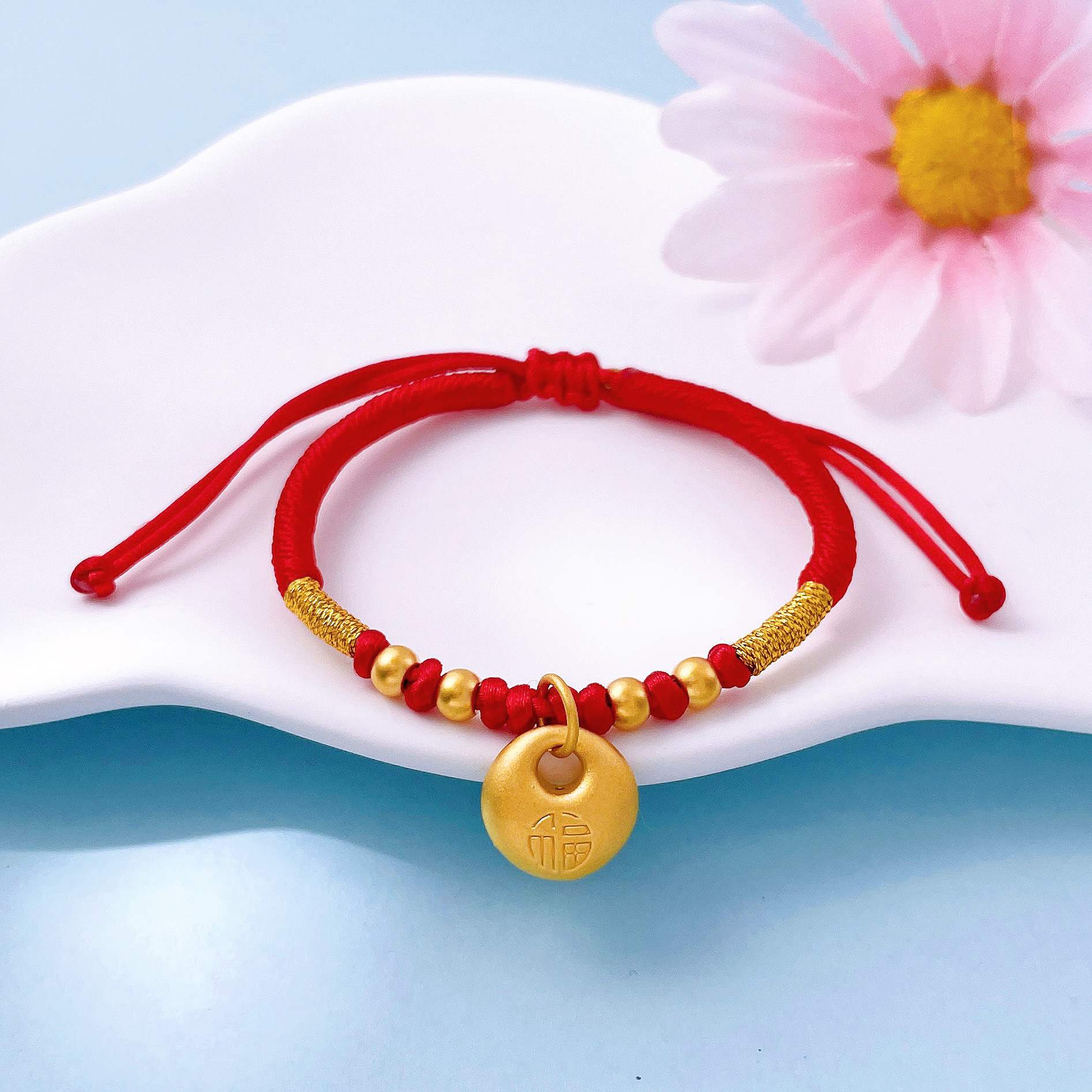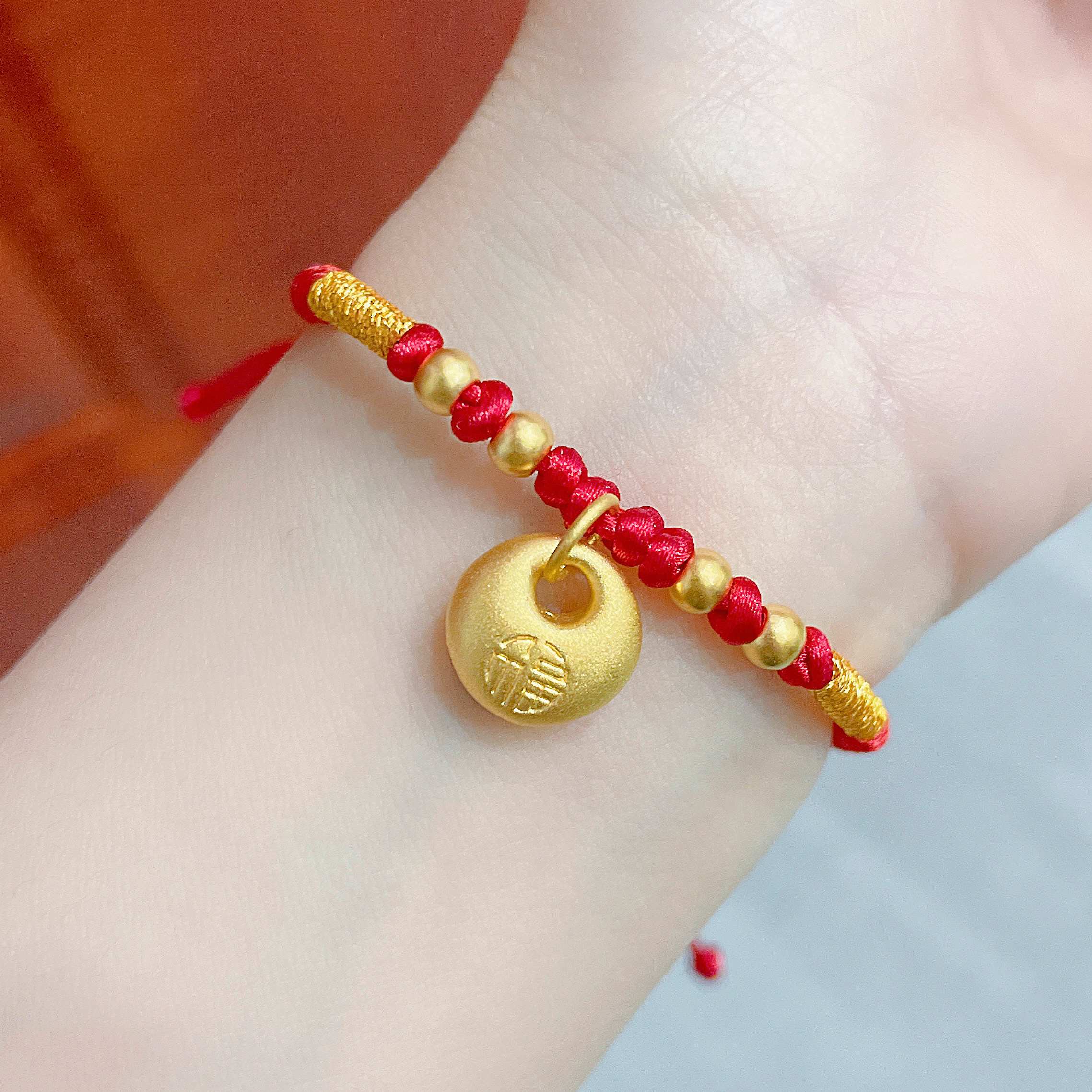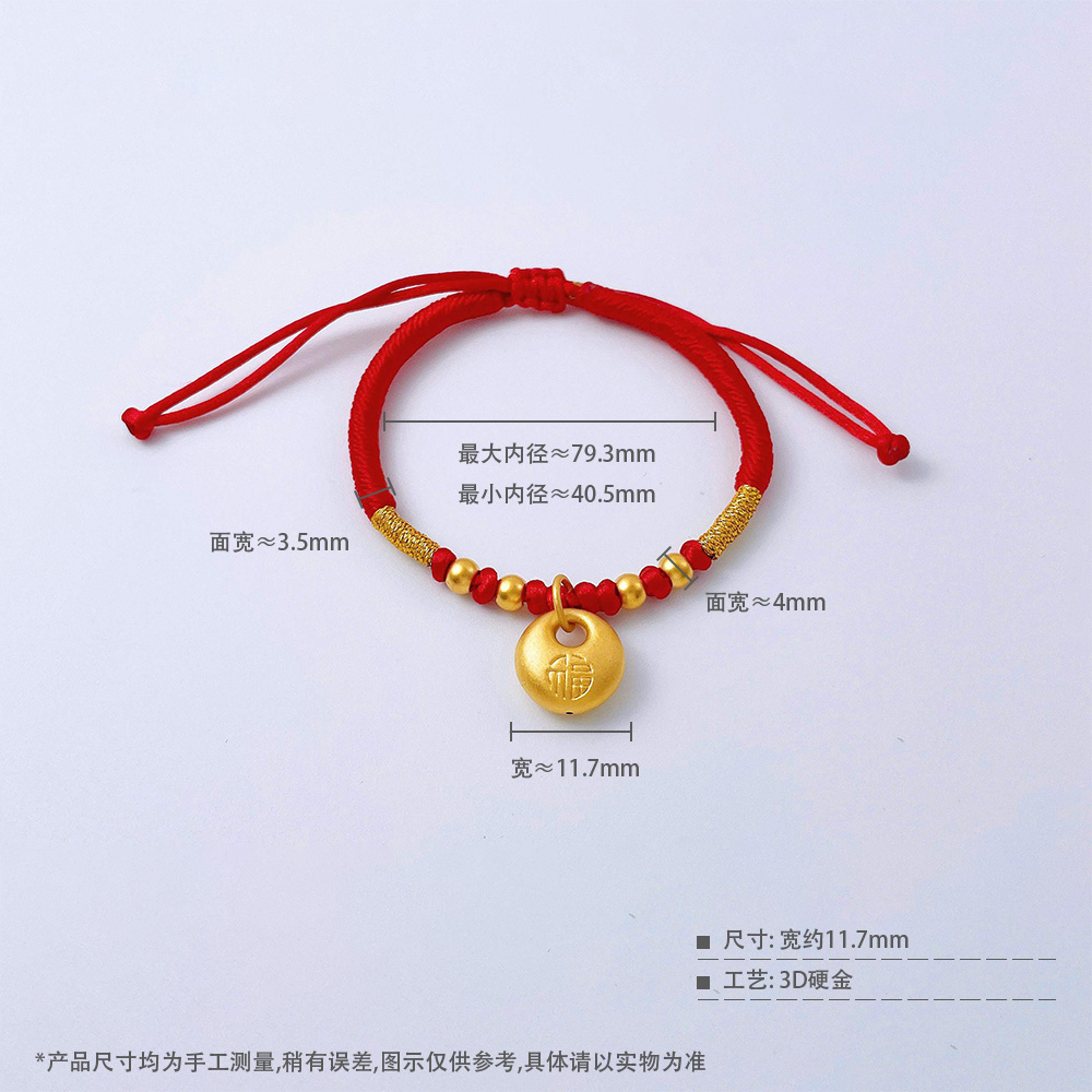 【限时7.5折】【定价黄金】足金 #招财纳福 #小胖福 3D硬金空心祥云平安福小胖福吊饰转运金珠调节编织绳贺岁红绳手串成品手串(AA3DSC00579)预售产品下单后不退款不退货不换货不补差价