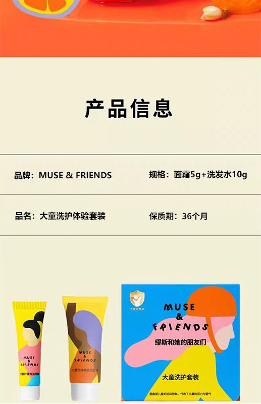 5g+10g | MUSE&FRIENDS大童洗护套装 面霜+洗发水 5g+10g 5-12岁(试用装)