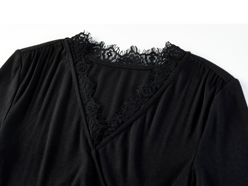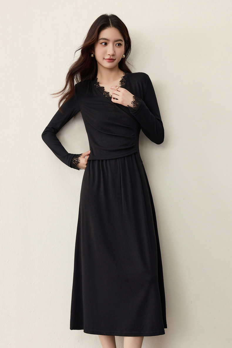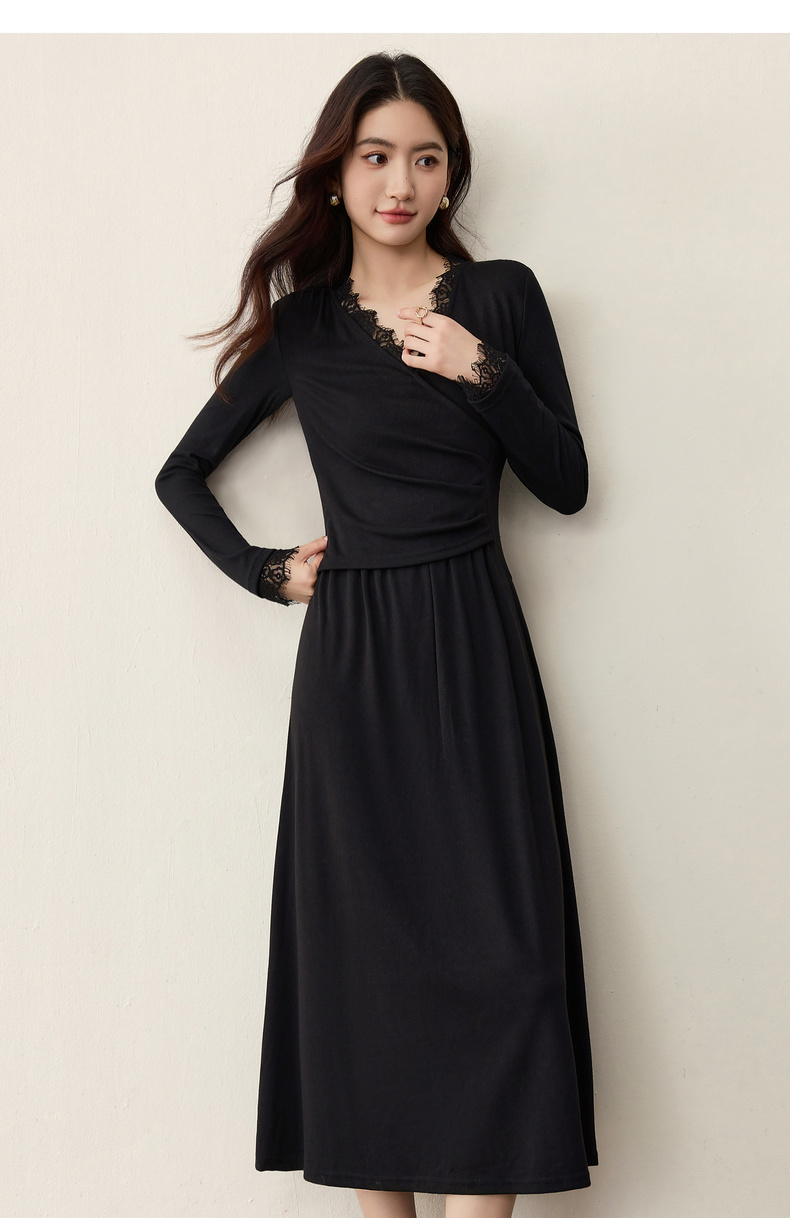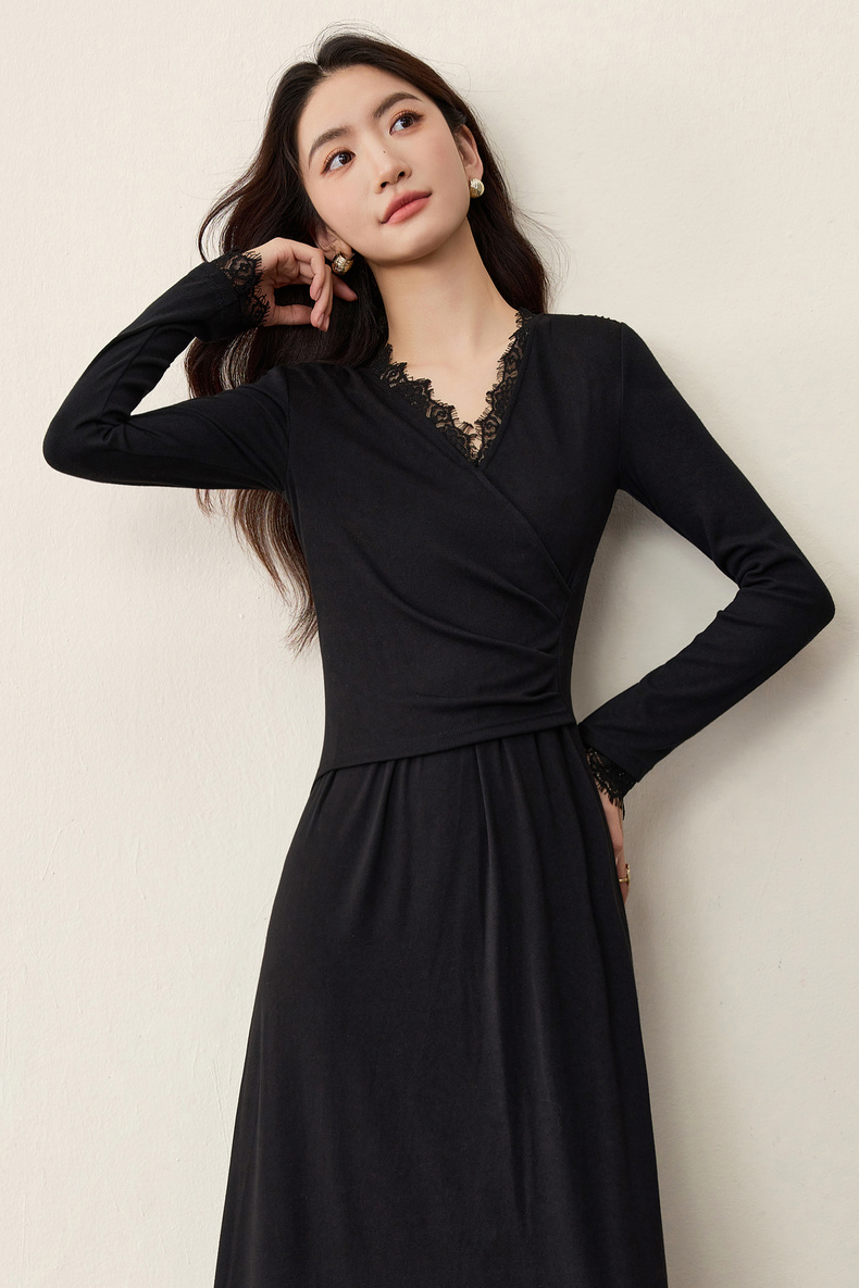 【内购】【立体睫毛花边】立体睫毛花边领前胸交叉收褶可拆飘带拼接连衣裙-Q53LB2664