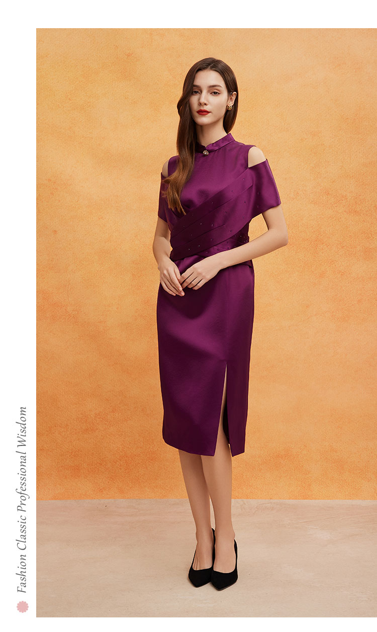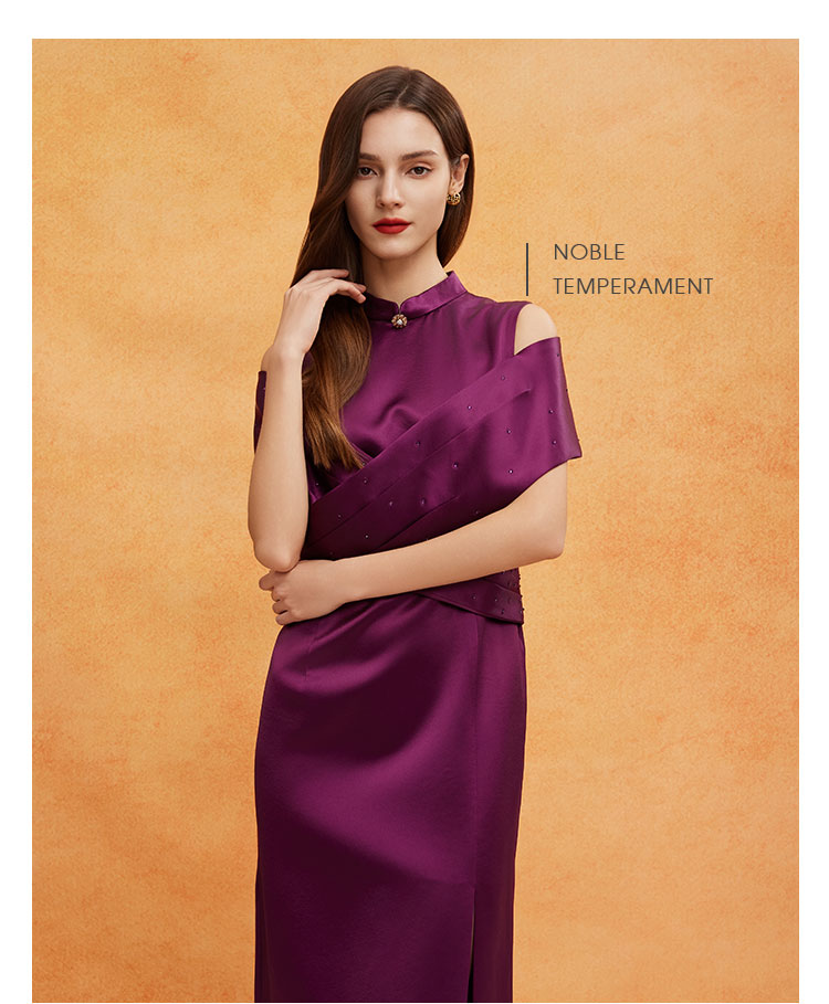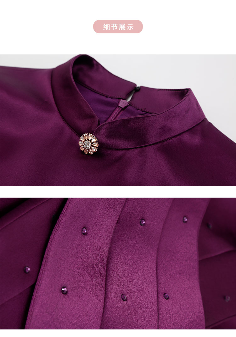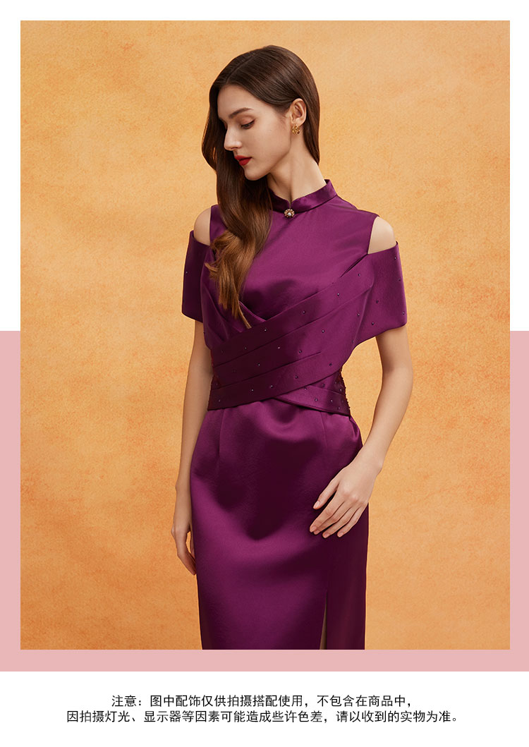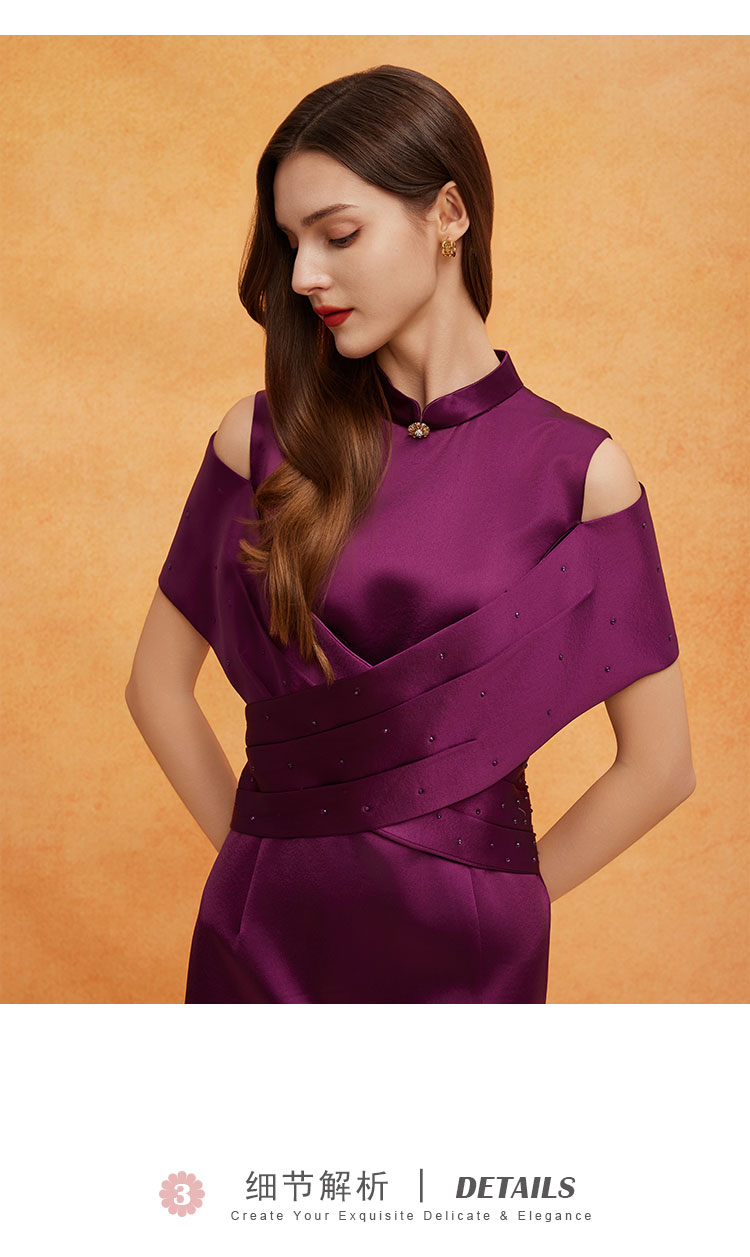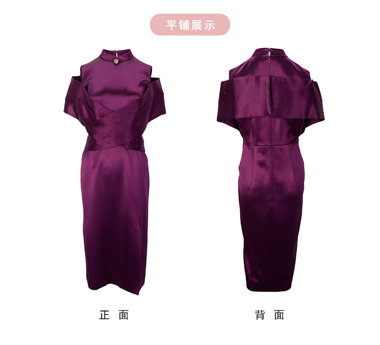 QF812斯尔丽2025春季新款新中式改良式披肩烫钻喜妈妈礼服连衣裙