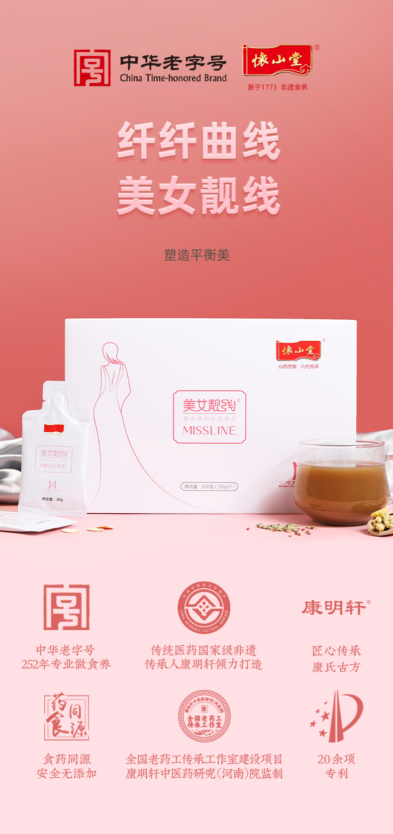 怀山堂 美女靓线630g复合植物饮品浓浆全生命周期铁棍山药制品