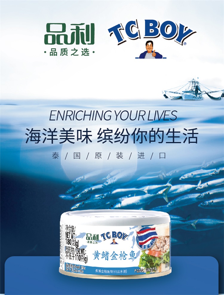品利TCBOY黄鳍金枪鱼块状泉水浸罐头/蛋黄酱三文鱼罐头180g 深海美味缤纷你的生活 032124/031608