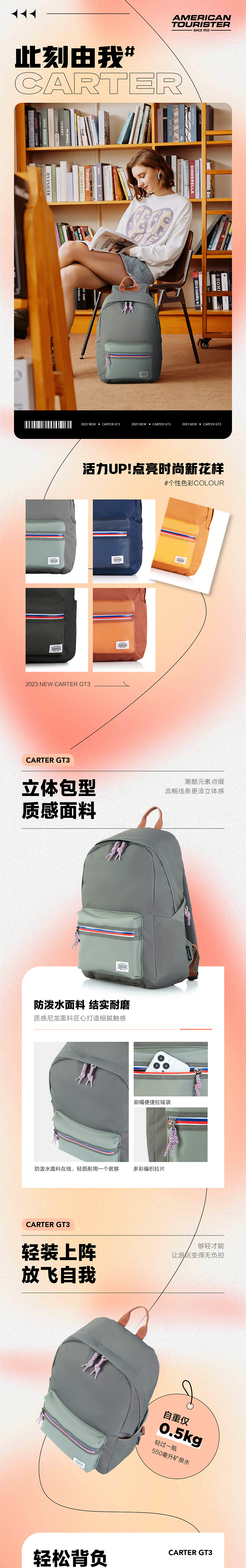 【美旅】CARTER系列时尚活力多彩双肩包GT3*003