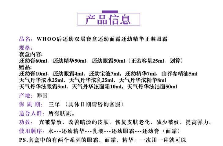 【香港直邮】Whoo后 还幼眼霜面霜还幼膏精华 双层皇后大套盒