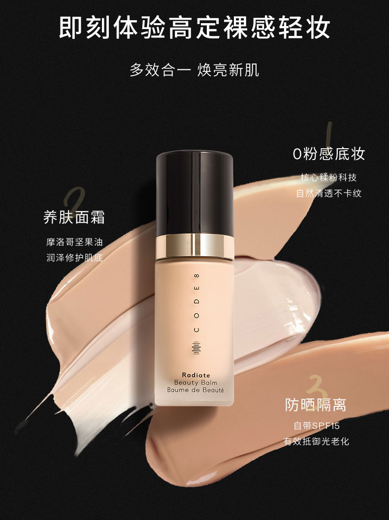 【通勤必备,一分钟快速提亮】英国CODE8养肤有色面霜30ml,粉质细腻、轻薄服帖、妆效自然透亮!