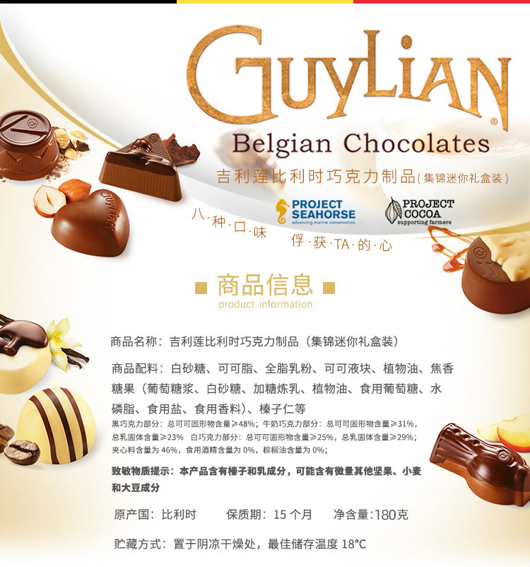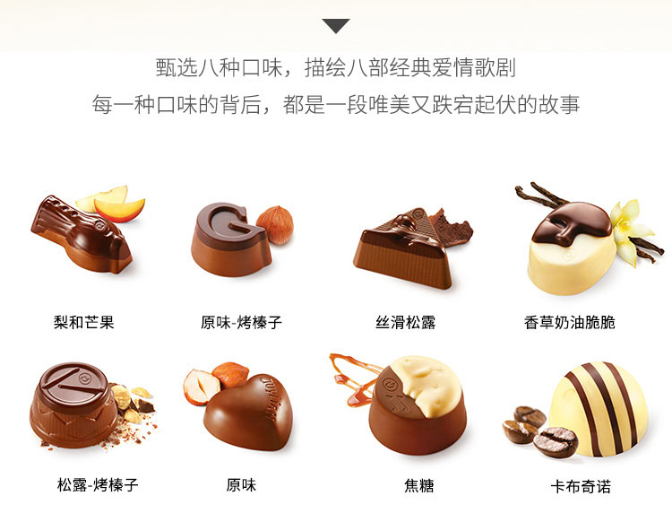 比利时吉利莲巧克力制品180g 集锦礼盒装甄选八种口味 描绘八部经典爱情歌剧 043988