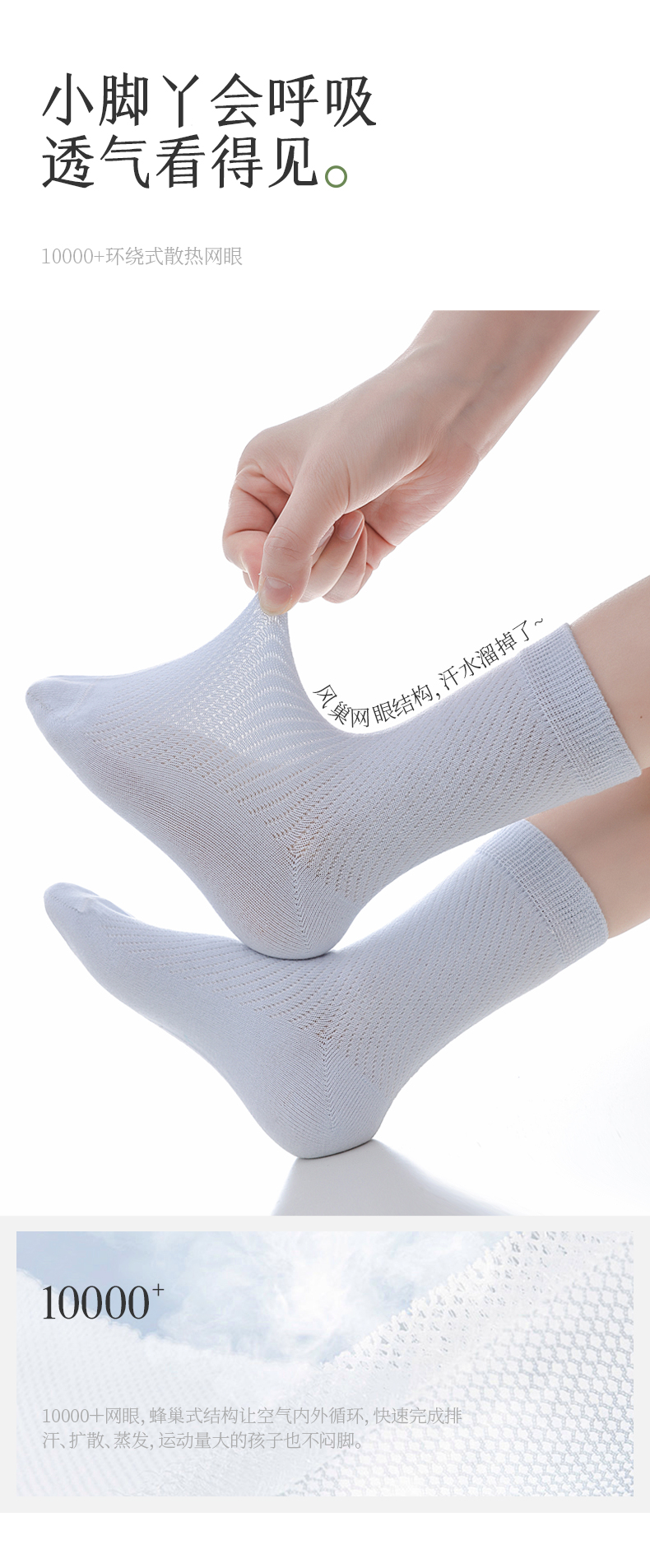 心选丨拾袜记春夏艾草精油防臭儿童袜宝宝网眼棉袜
