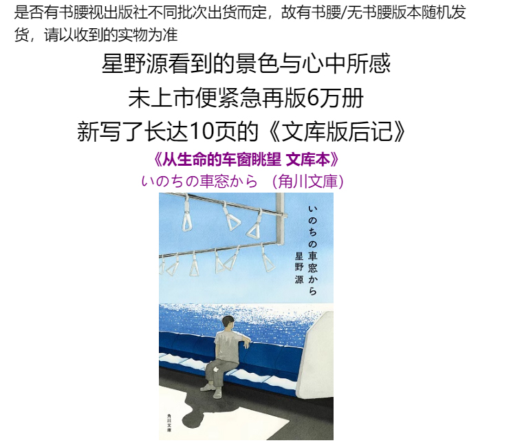 预售 【中商原版】从生命的车窗眺望 文库本 星野源 日文原版 いのちの車窓から 角川文庫