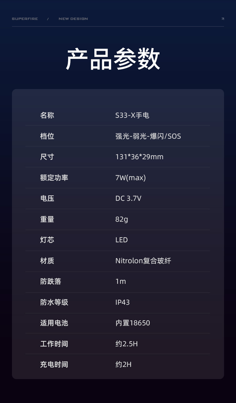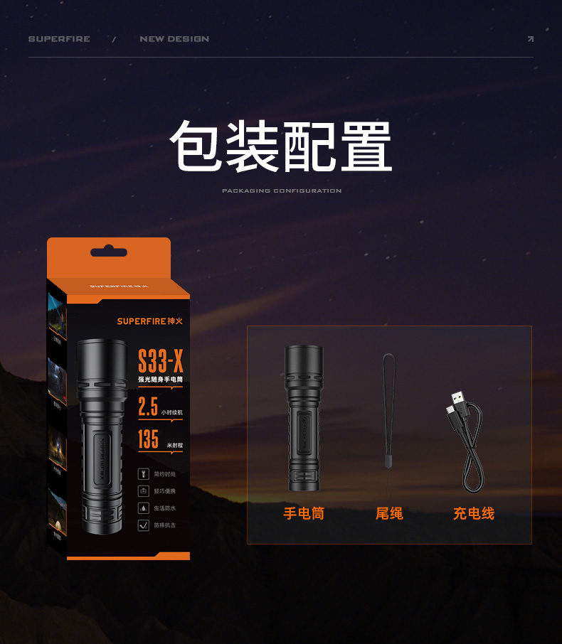 SUPERFIRE神火S33-X强光远射学生宿舍家用应急便携手电筒