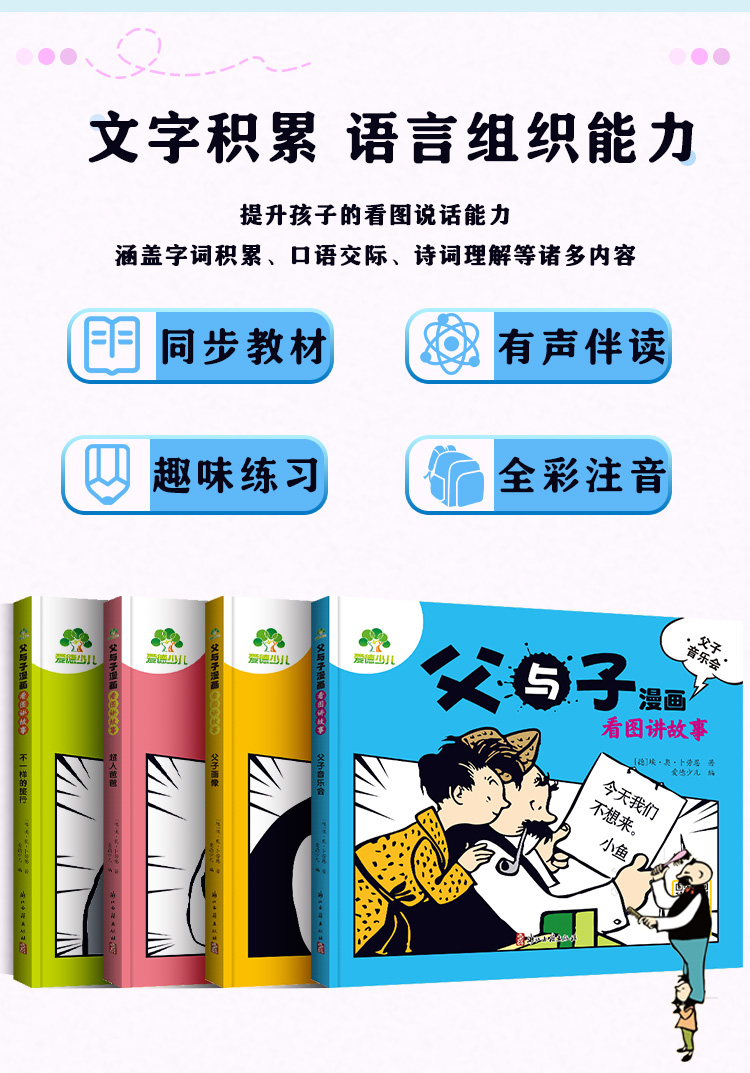 爱德少儿 父与子漫画书全集看图讲故事 全套4册注音版彩色小学生阅读必读推荐课外正版拼音版亲子世界经典绘本大全书籍