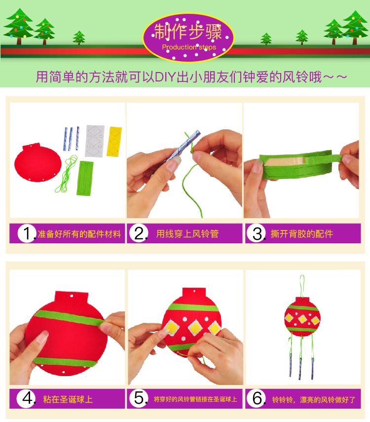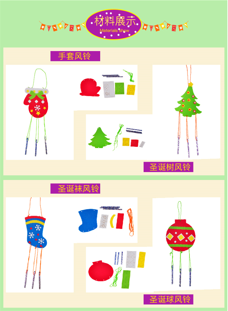 圣诞节风铃儿童手工DIY制作圣诞小礼物幼儿园圣诞树装饰材料包