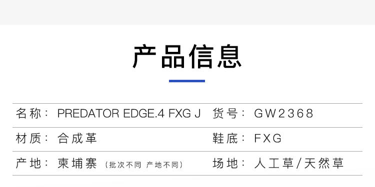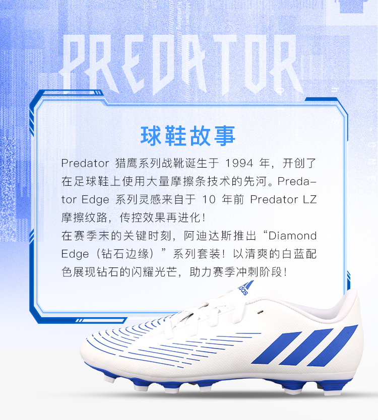 ADIDAS/阿迪达斯PREDATOR EDGE.4 FG长钉儿童款猎鹰入门级足球鞋男GW2368