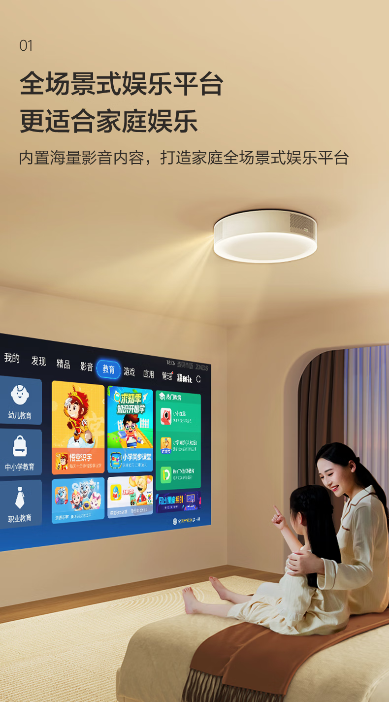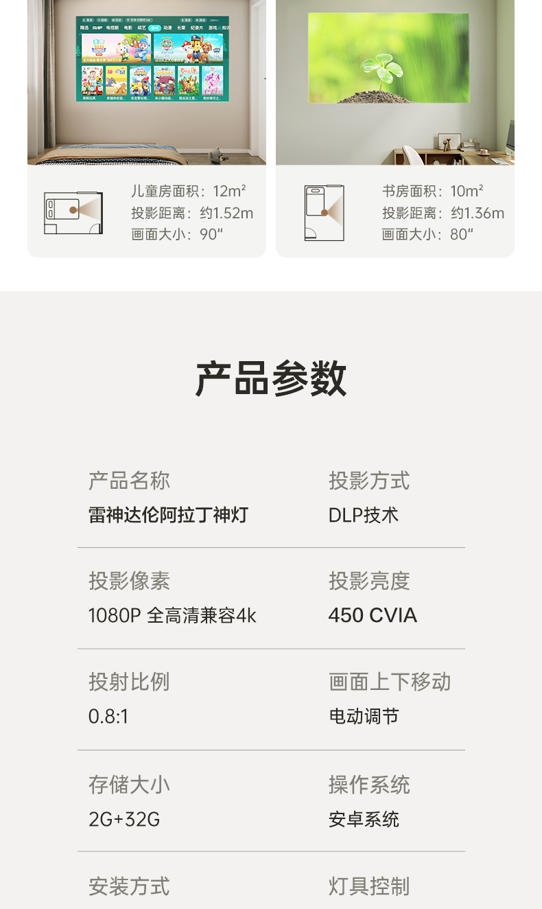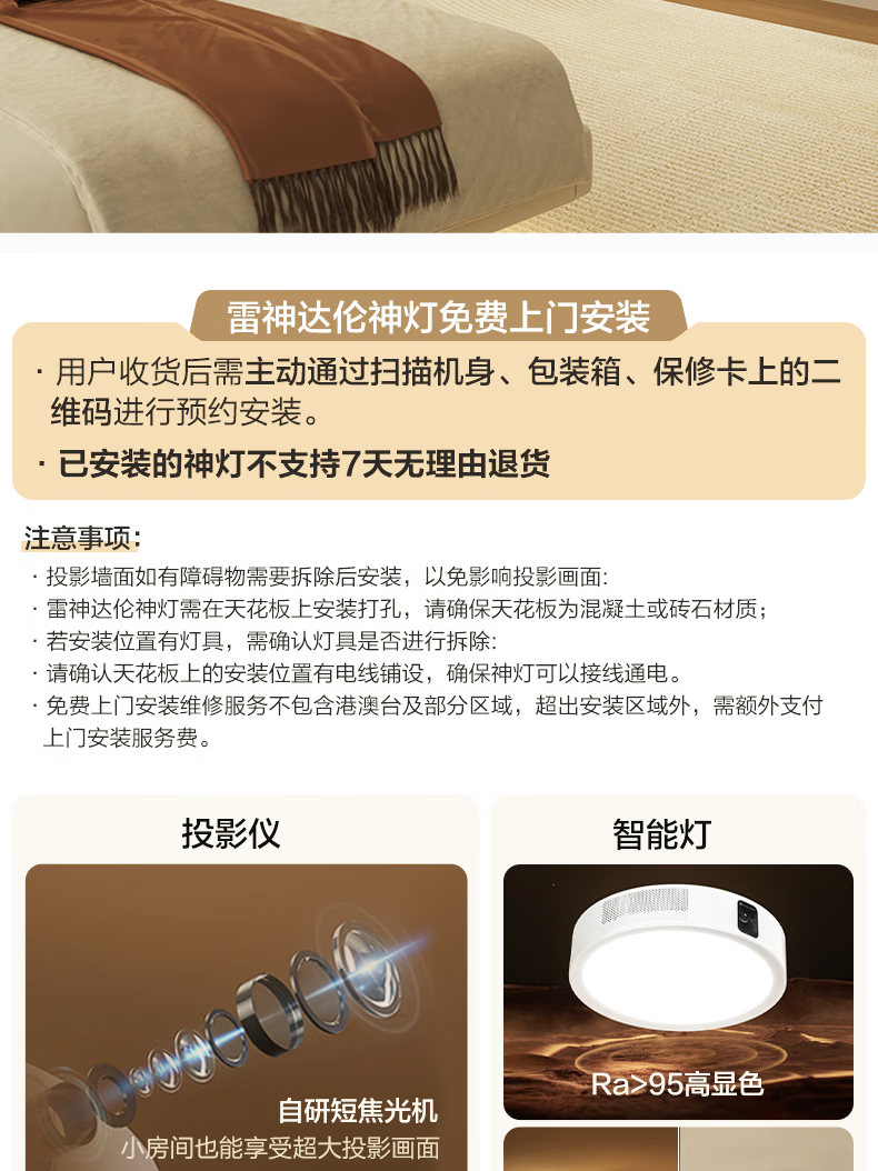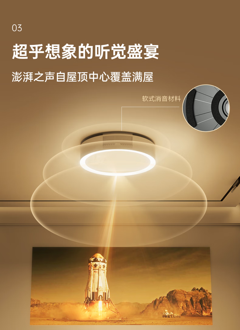 雷神神灯 卧室投影吸顶灯 家用投影仪 家庭影院(投影+音箱+护眼灯三合一 不占空间 画面不遮挡 光线不晃眼)