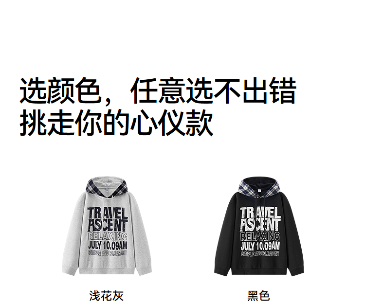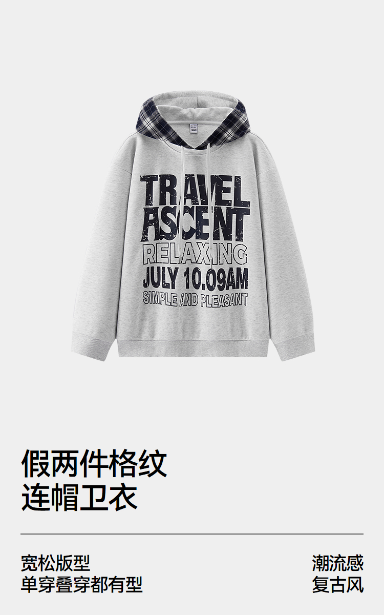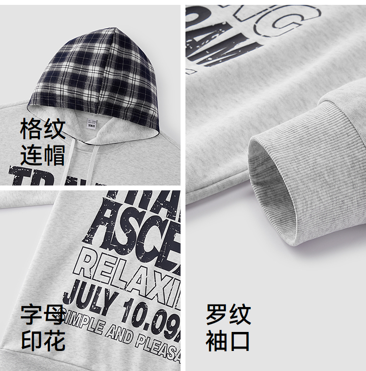 商场同款|森马卫衣男秋装假两件2025新款拼接格纹连帽上衣复古潮