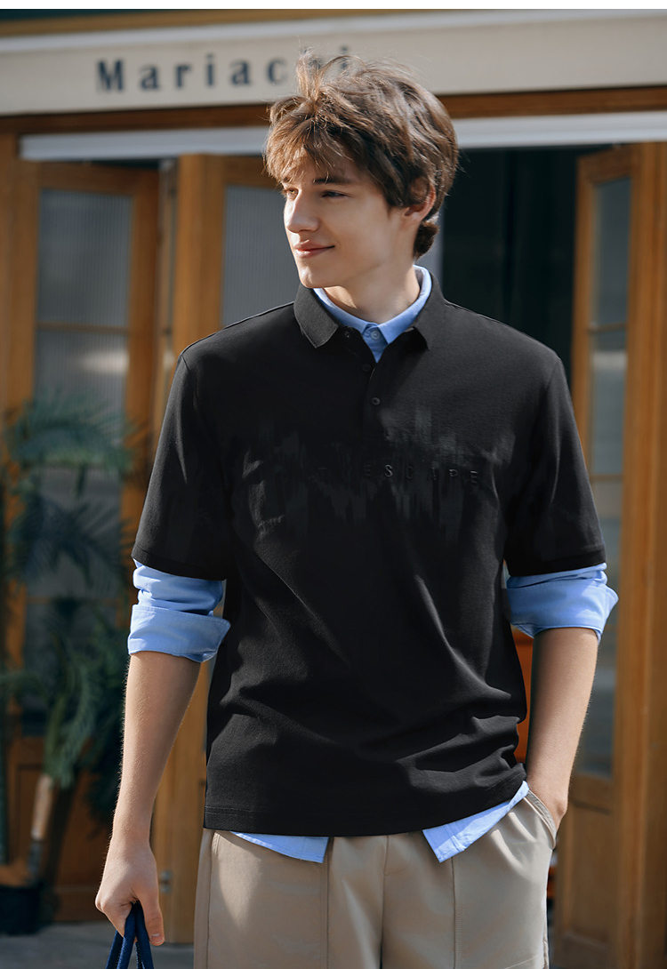 森马POLO衫男国风水墨印花t恤新中式绣花上衣短袖夏装2025新款潮