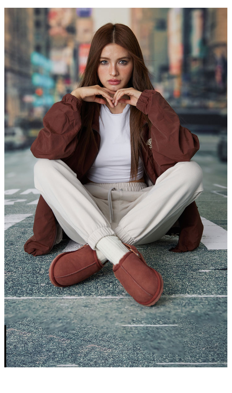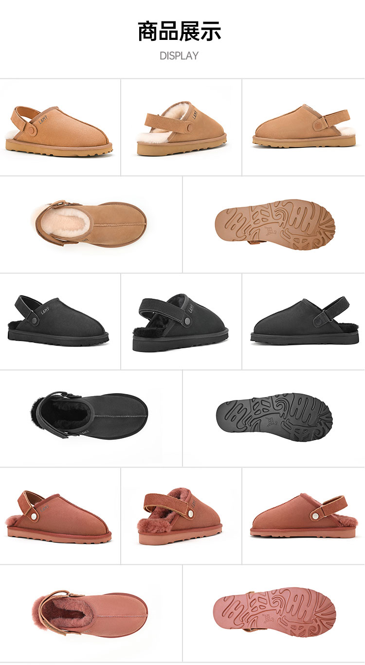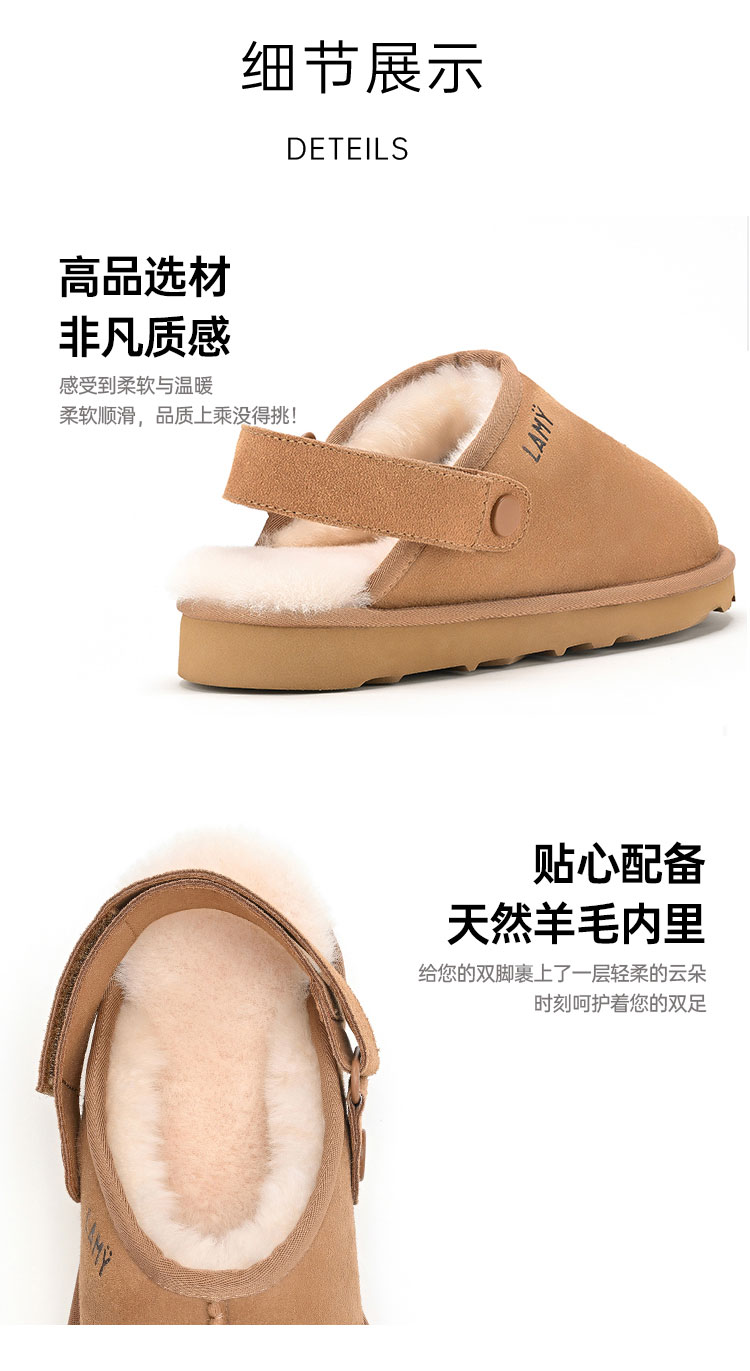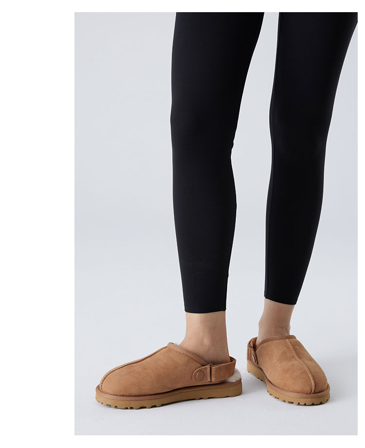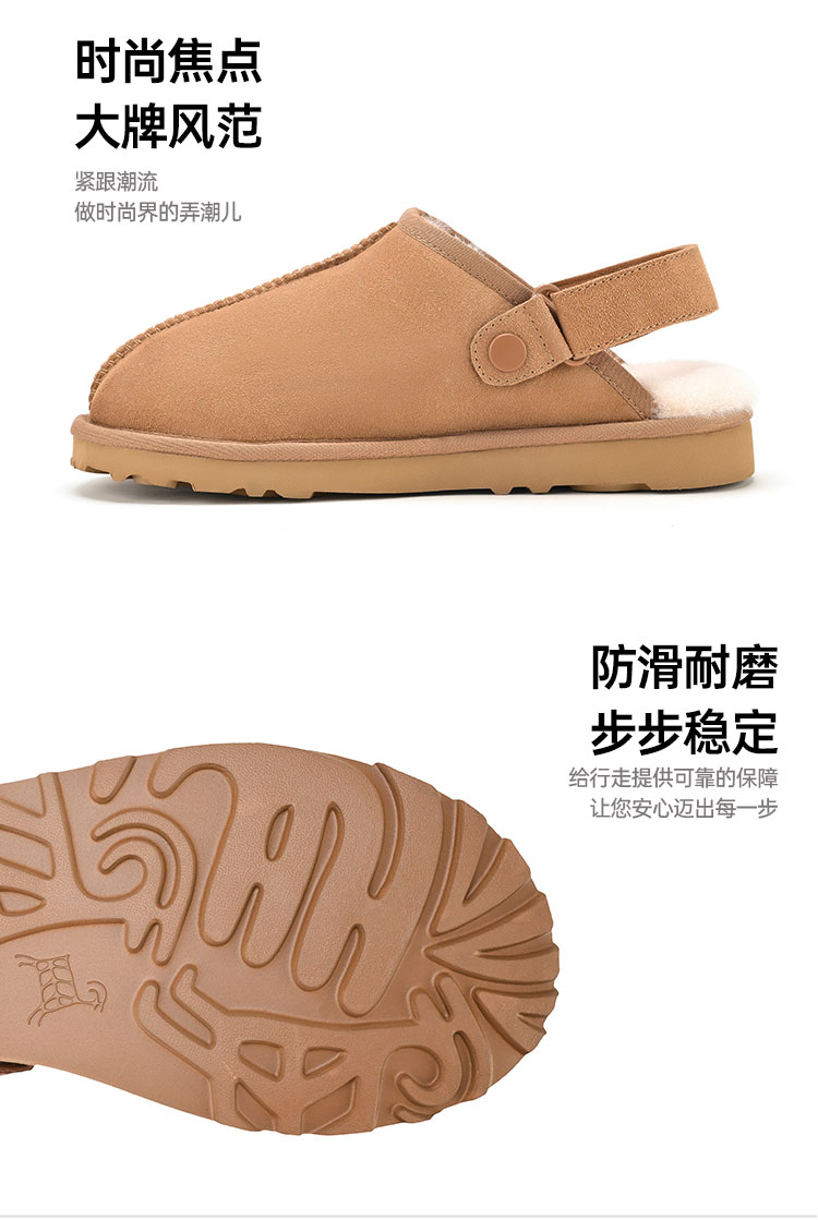 进口澳洲真皮毛一体平底低帮圆头软底拖鞋HZ003