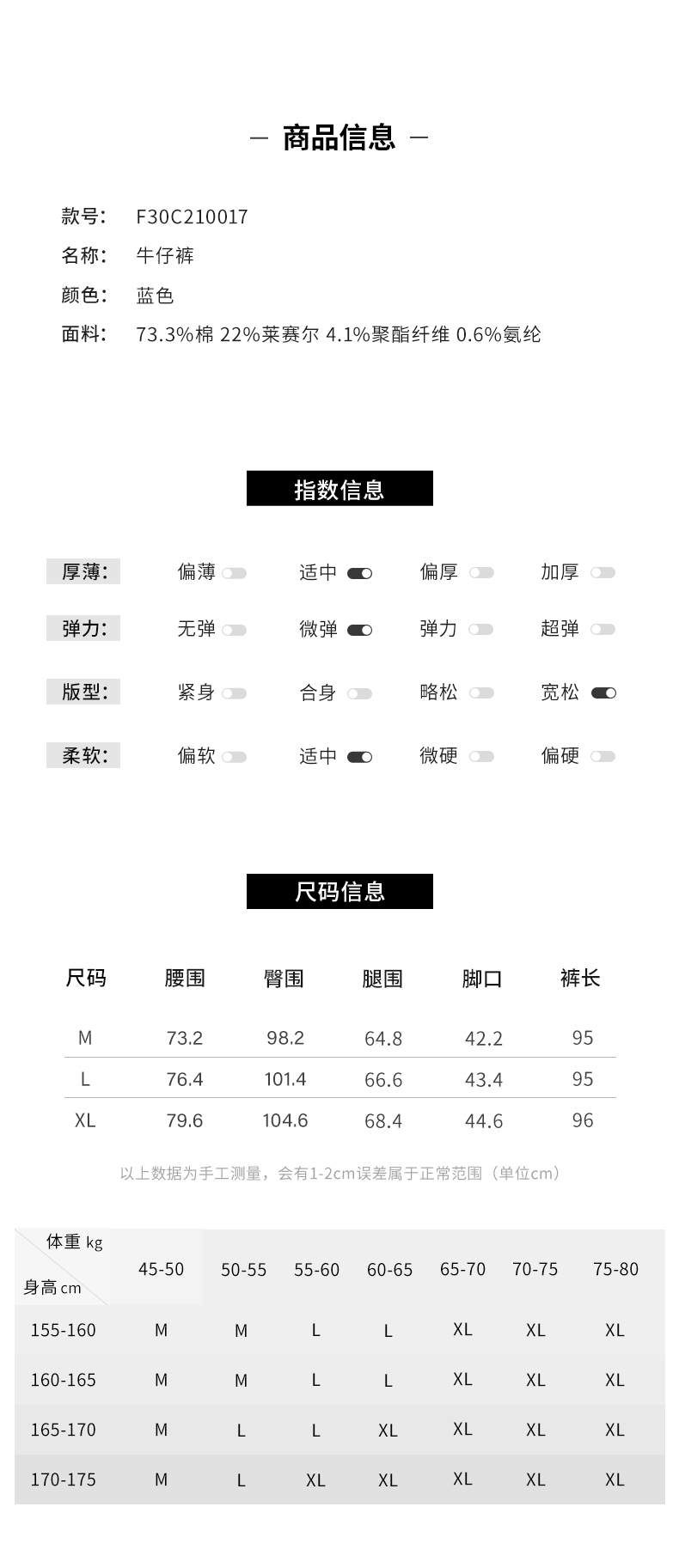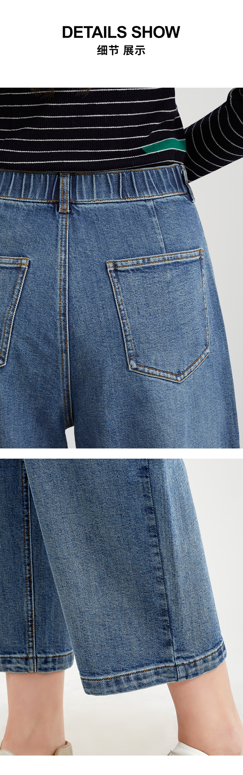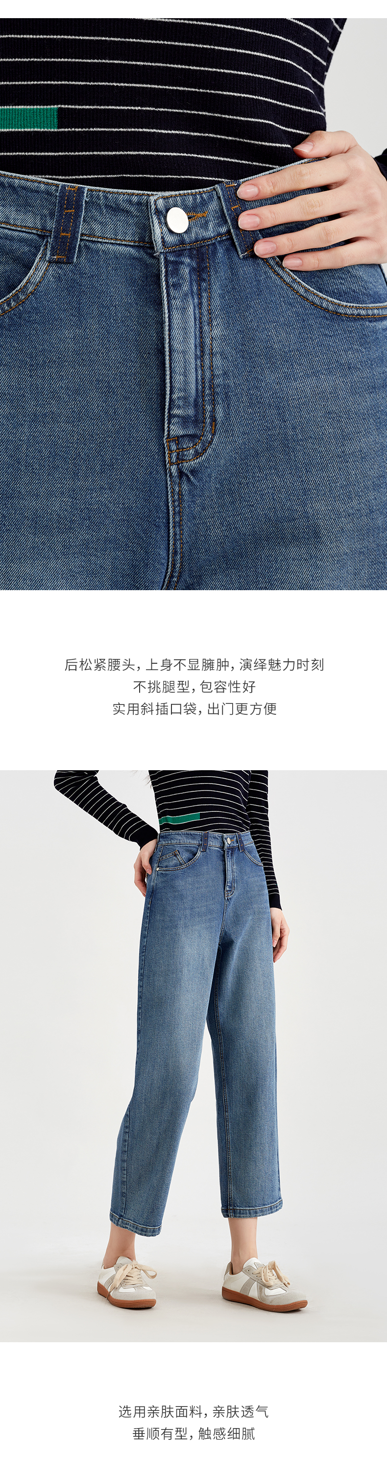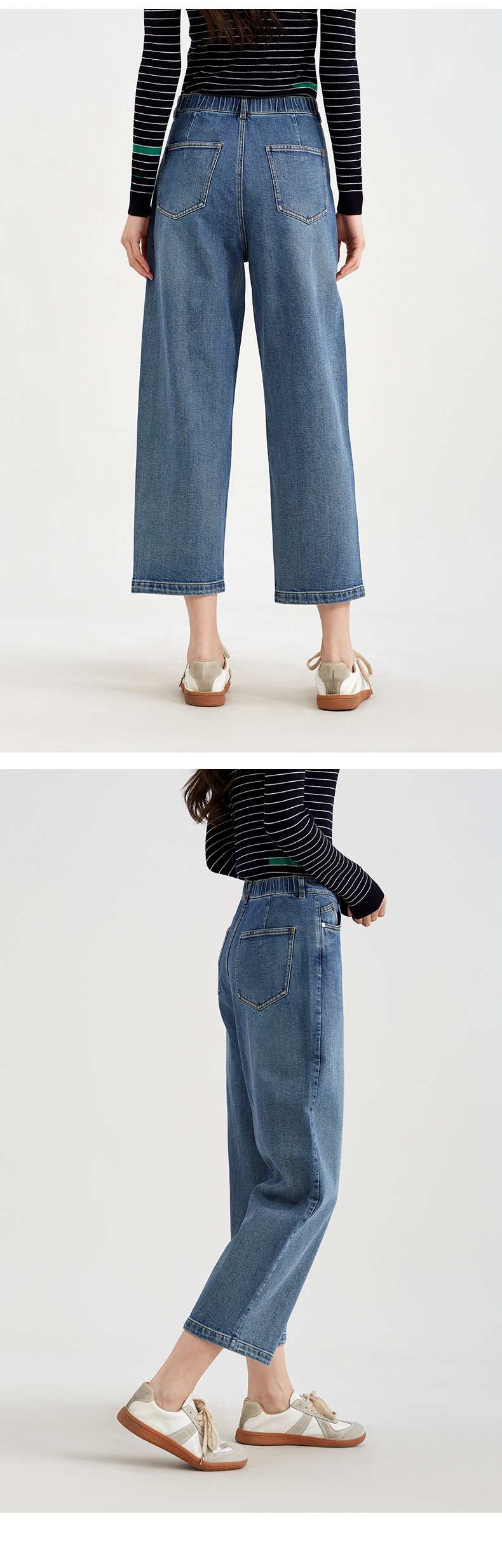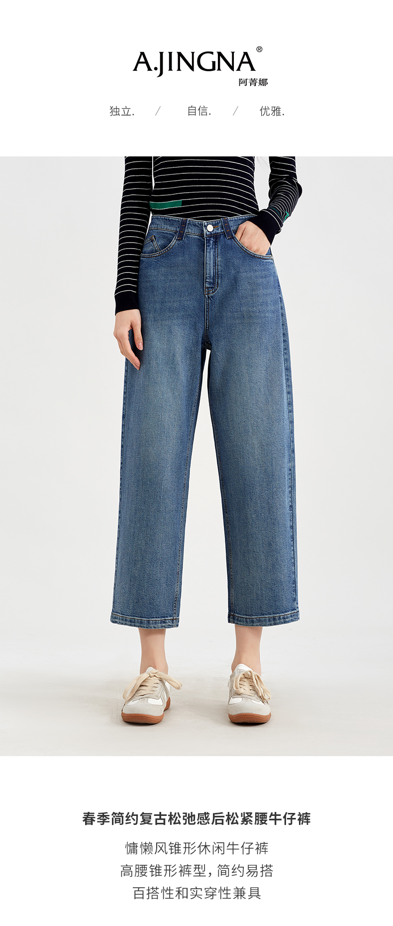 【慵懒格调】阿菁娜简约复古松弛感后松紧腰牛仔裤F30C210017