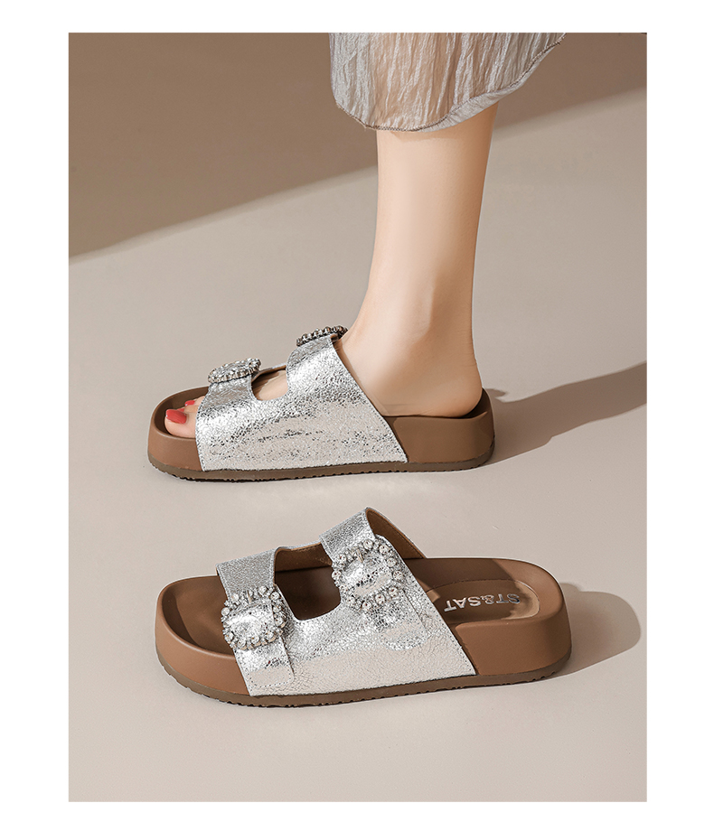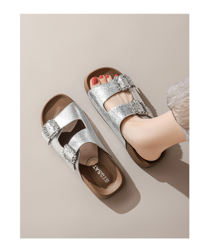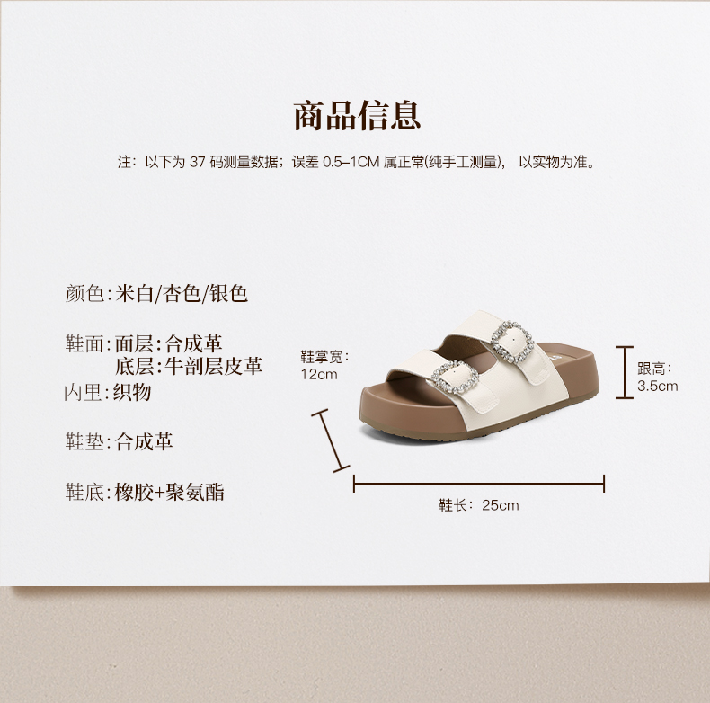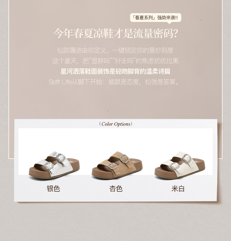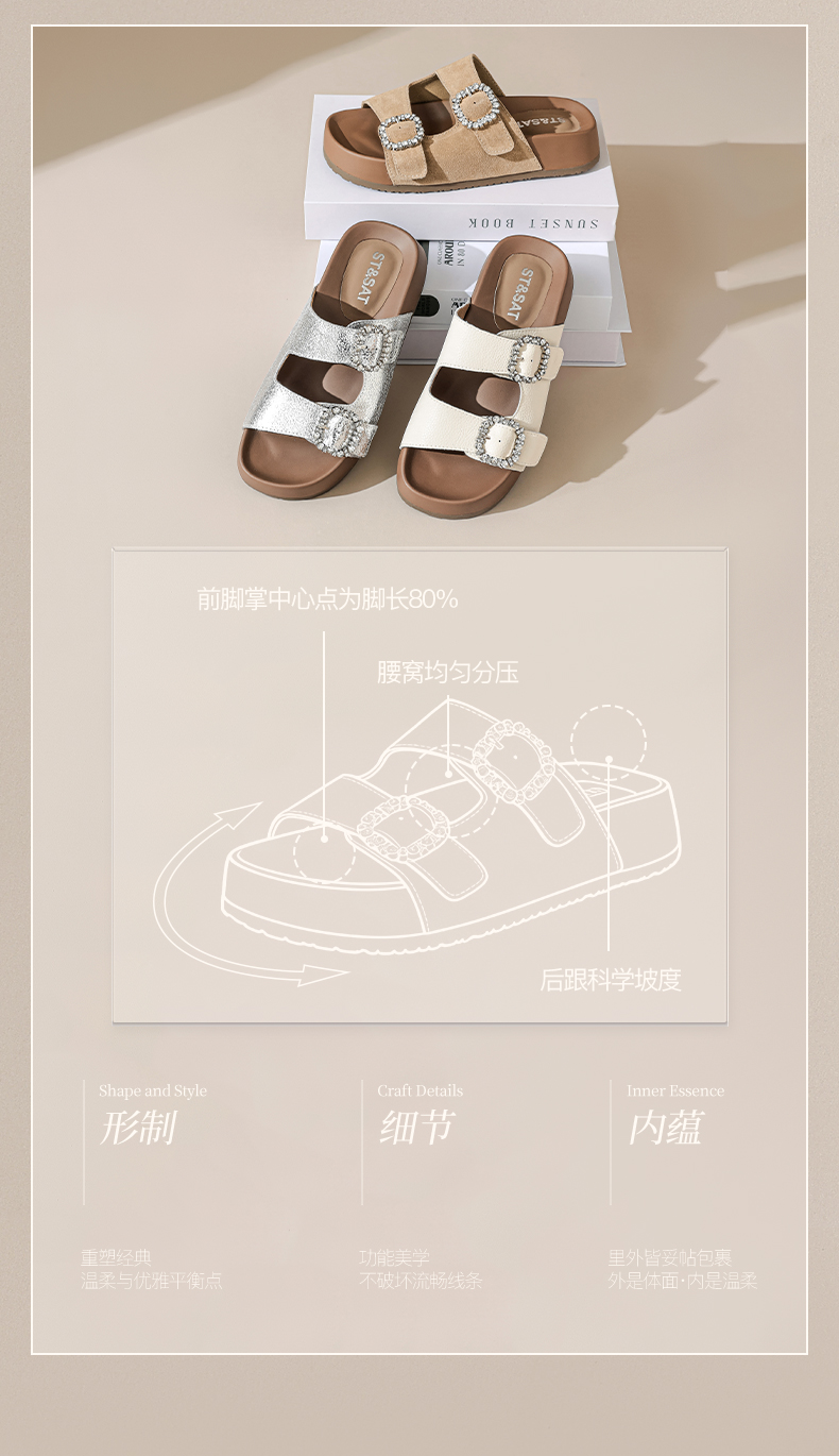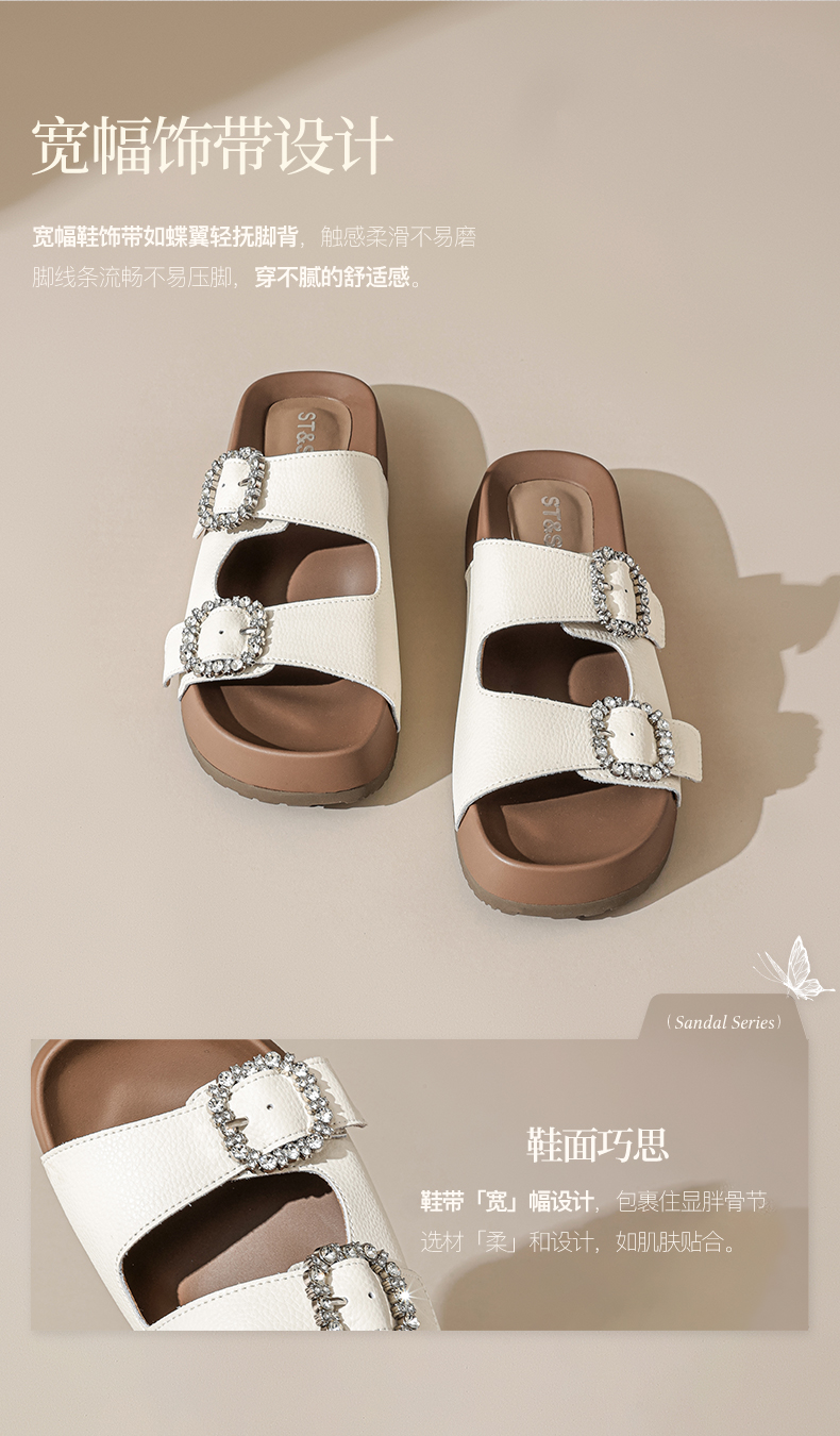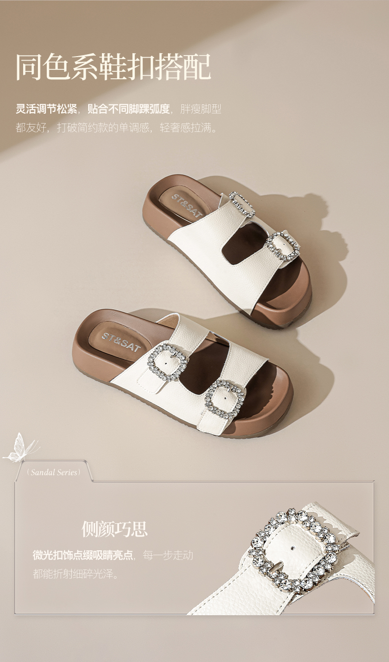 星期六26夏新款精致钻扣百搭厚底勃肯拖SSE2110CTW