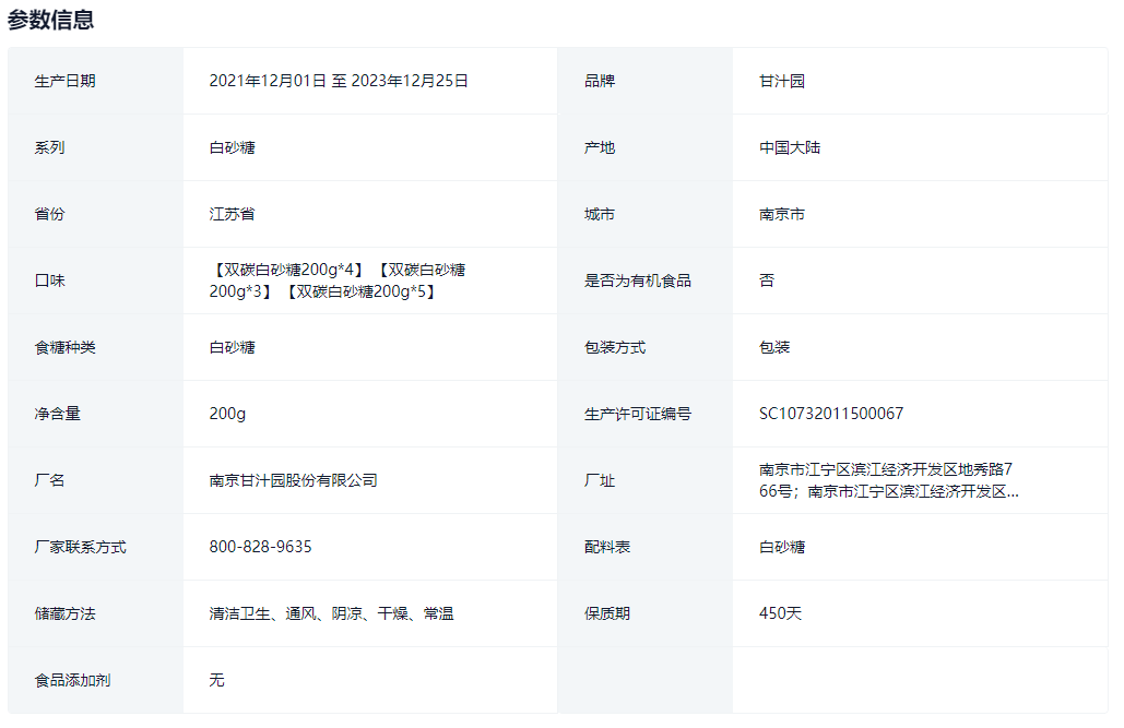甘汁园白砂糖200g(新老包装随机发货)